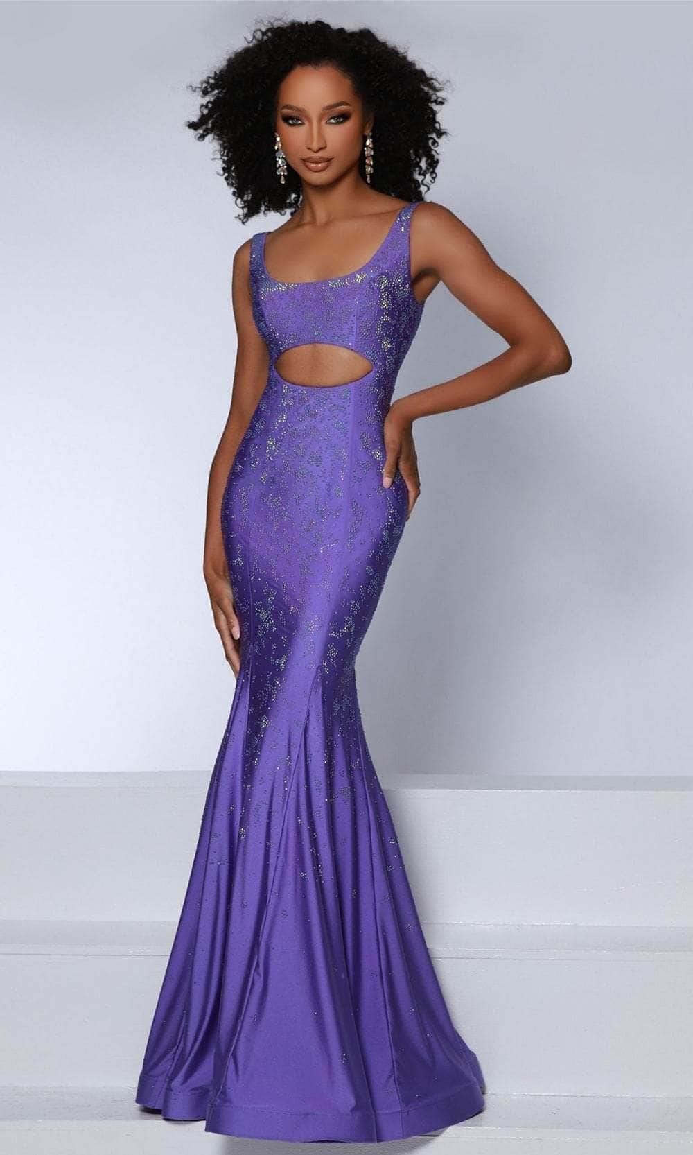 Make yourself into a vision of loveliness in this remarkable creation by Johnathan Kayne 2806. Festooned with glimmering beads, this sleeveless dress will make you shine throughout the night. It is designed with cutout details at the front and back, letting you reveal a peek of skin. Also, it features a scoop neckline and a mid-open scoop back supported by wide shoulder straps. The godets and horsehair hem accent the full-length skirt, giving it a stunning flare of mermaid silhouette. This Johnathan Kayne 2806 dress is an ideal choice for an unforgettable prom night. Models are wearing Fuchsia, and Purple colors.