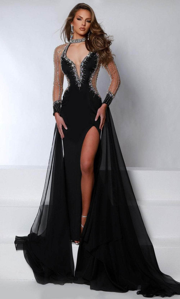 The Johnathan Kayne 2955 evening gown is a captivating masterpiece that exudes modern elegance. Beaded sleeves and a thigh-high slit create a striking silhouette, while beaded mesh side cutouts add a touch of intrigue. The gown's allure is elevated by the delicate chiffon sleeve detail, which imparts an air of sophistication. This Johnathan Kayne 2955 creation is a testament to contemporary design, perfect for the woman who desires to make a bold and unforgettable statement. Models are wearing the Bubblegum, Black, and White colors.