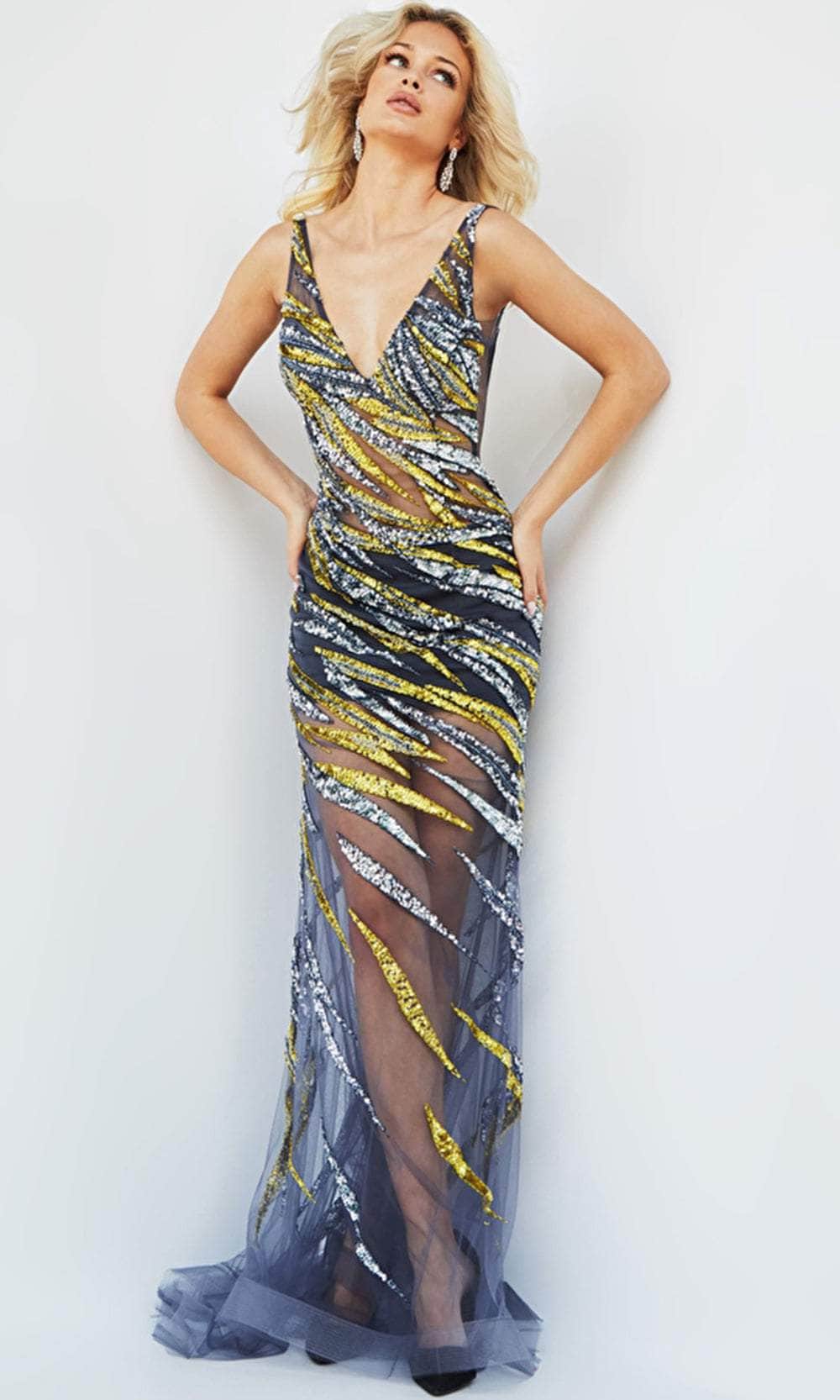 Jovani 06790 - V-Neck Beaded Sequin Prom Gown