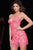 Models are wearing the Neon Pink, Black/Nude, Gold/Nude, and White/Nude variants of the dress.