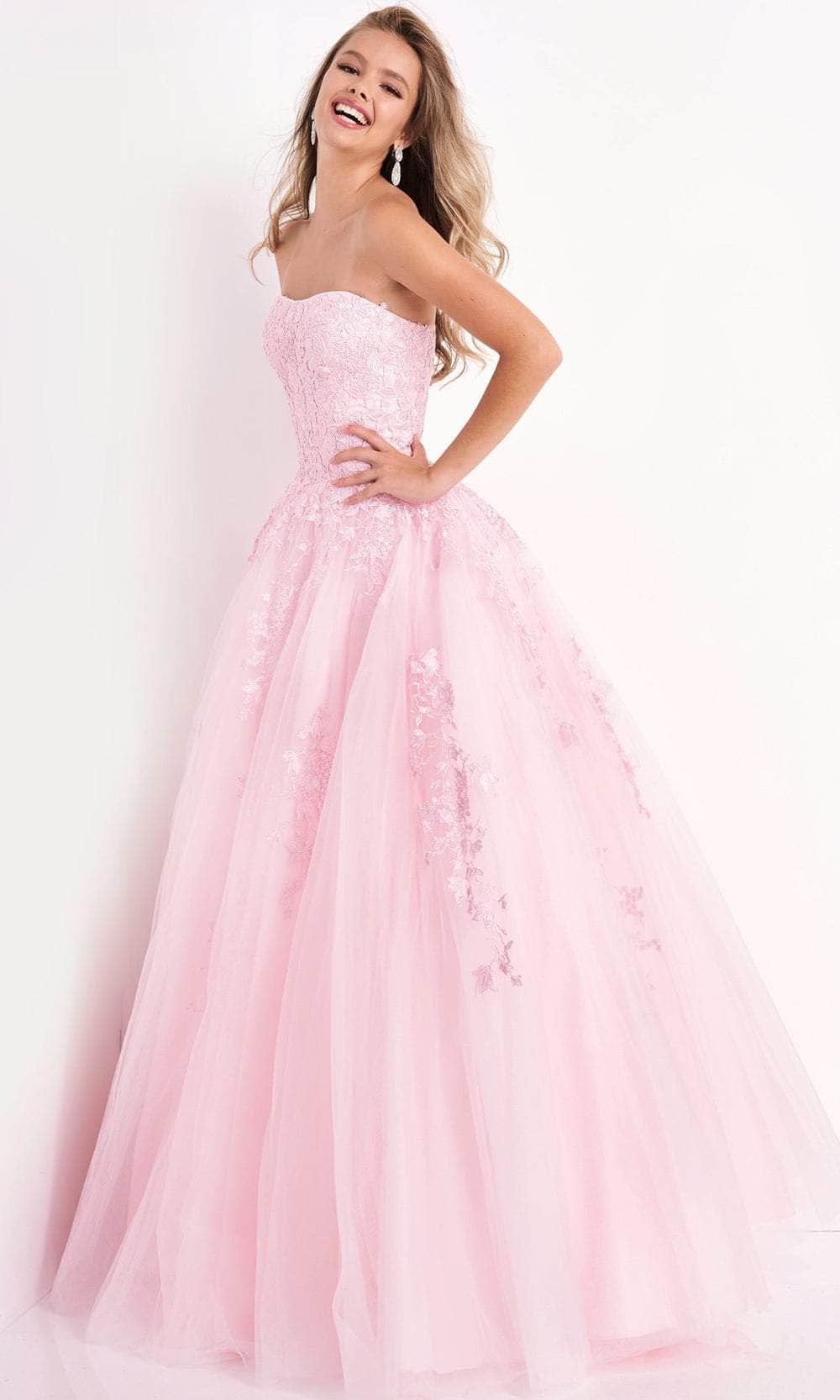 Embrace the enchanting beauty of the Jovani 1831 gown, a stunning work of romantic artistry. This captivating design offers a meticulously crafted silhouette that enhances your figure, with a fitted bodice adorned in delicate lace appliqués that beautifully contrasts the voluminous, layered tulle skirt. The straight neckline and midrise back bring a touch of sophistication, while the rosette accents add a playful, feminine charm. Ideal for prom night, this ethereal Jovani 1831 gown captures grace and glamour in every detail, making it a truly unforgettable choice. Dress is pictured in Burgundy, LightBlue, Light Pink, Light Yellow, Navy, and Red variants.