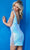 Radiate pure elegance as you dance the night away in this fantastically ornate Jovani 220410 creation. Beautifully designed with a glistening display of sequins on the curve-hugging silhouette, this piece showcases a sleeveless, plunging V-neckline accented with a ladder strap at the bust. Captivatingly detailed with a backless style, the short sheath skirt highlights an illusion side slit with gorgeous beaded fringes that give you a sultry appeal. This Jovani cocktail dress is sure to make you the darling of the party! Model is wearing the Blue color.
