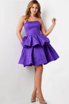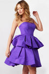 Step forward with pride and confidence as you dance all night with this ethereal Jovani 22920 cocktail dress. This short dress displays a straight across neckline in a strapless bodice, showcasing as well the princess seams feature. The back shows a mid-open detail while being enclosed with a center zipper. This skirt exhibits a pleated A-line silhouette with layered and horsehair hem features, making the dress more fun and lively to look at. You are indeed a fashion icon as you wear this Jovani 22920 masterpiece. Models are wearing the Orange, and Purple variants.