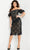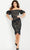 Indulge in appreciative glances when you flaunt your spectacular assets in this Jovani 23812 creation. Crafted with floral lace glittering with rhinestone details structured with a tailored lining, this beauty fascinates with an off-shoulder neckline and is framed with lovely puff sleeves. Designed with a midrise back and invisible zipper closure, eyelash fringes ornate the neckline. Soft draping graces the skirt as it forms a fitted silhouette with a back slit and a scalloped below-the-knee hemline. Get primed to climb that social ladder as you captivate the crowd in this chic Jovani 23812 masterpiece. Model is wearing the Dark Navy color.