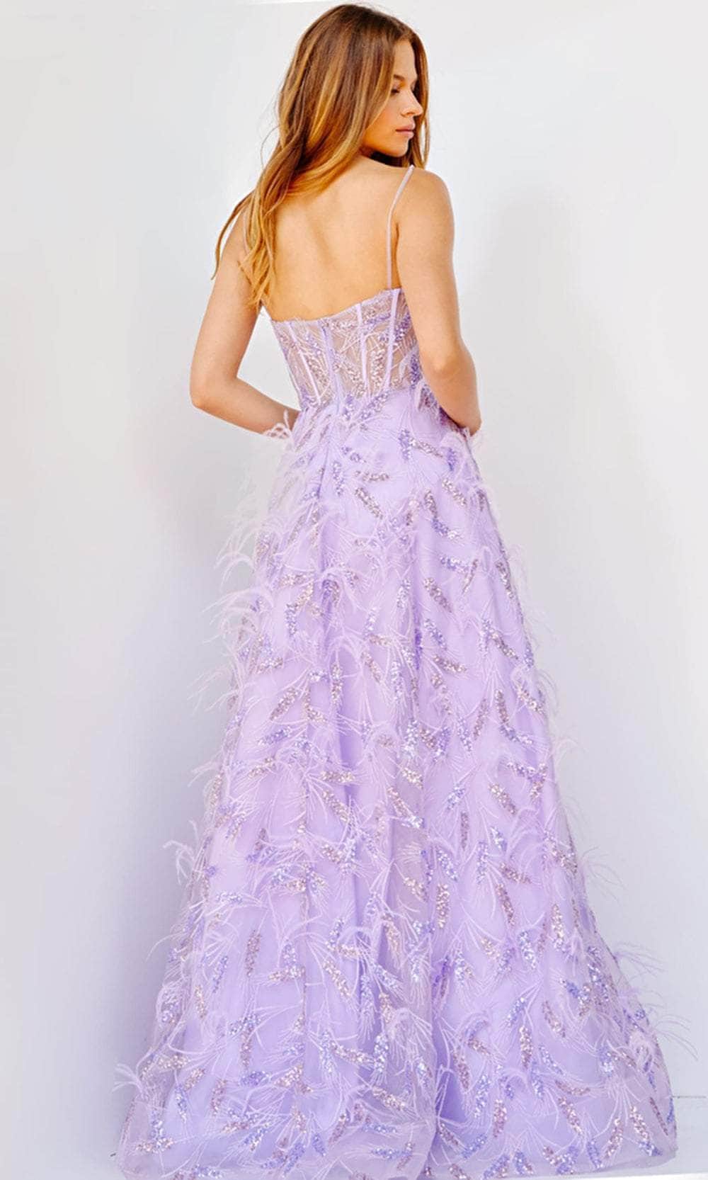 You are more than gorgeous when you wear this unbeatable prpm dress from Jovani 24078. The skirt offers a fun and fabulous look with an A line silhouette adorned with feather appliques and multicolored sequin accents. Meanwhile, the corset bodice shows a hint of skin with sheer fabric and boning, topped with a sweetheart neckline and spaghetti straps. Streamers of sequins fan across the bodice for a cohesive style. Radiate a fresh style as you orchestrate a dramatic entrance in this radiant Jovani 24078 masterpiece. Model is wearing Lilac color.