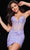 Make it your time to shine as you wrap yourself in beauty and style in this Jovani 26194 creation. Festooned with rhinestones sprinkled on lace applique details on the bodice, this dress features floral details along the v-neckline and sheer v-open styled back. Stringed with spaghetti straps on a sheer styled bodice, corset boning sculpts this stunner as the skirt crafts a sheath design with a mini hemline. Be the very embodiment of femininity in this ethereally crafted Jovani 26194 masterpiece. Model is wearing the Lilac color.