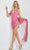 CLeave a horde of admirers as you grace this immaculate event in this Jovani 26319 creation. Stylishly crafted with a tailored silhouette overlaid with a lattice net design, this beauty flatters with a sleeveless bodice and a plunging v-neckline with a sheer modesty inset. Crafted with a deep v-open back and a zipper closure, the ensemble sculpts with a fitted skirt into a mini hemline. This beauty also parades a side slit and graced with a cascading sash atop of it. Get swept away on an upsurge of pure feminine flair in this Jovani 26319 masterpiece. Model is wearing the Hot Pink color.