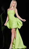 Entice everyone to take a gander at you in this fabulously designed Jovani 36928 creation. Flaunting tailoring lines and richly ornamented with shirring details, this cocktail dress features a straight-across neckline coupled with a midrise styled back and a zipper closure. Designed with a sexy sheath form and a mini hemline, the back is accented with an oversized bow with a cascading sash that bestows drama to the ensemble. Let your fashion choices reflect your stylish flair and impeccable taste with this Jovani 36928 masterpiece. Model is wearing the Lime color.