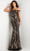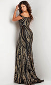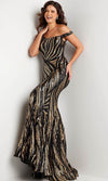 Elegant and alluring, this sophisticated Jovani 37351 prom dress is ready to shine at any event. This sequin embellished attire will leave everyone speechless as you glide pass through them as this showcases an alluring asymmetrical off-shoulder neckline on a fitted bodice. It also displays a mid-open back that is enclosed by a zipper for a refined finish. Additionally, it also reveals a mermaid silhouette that exudes sophistication from all angles. Beam with pride when you wear this radiant Jovani 37351 masterpiece. Model is wearing Black/Gold color.