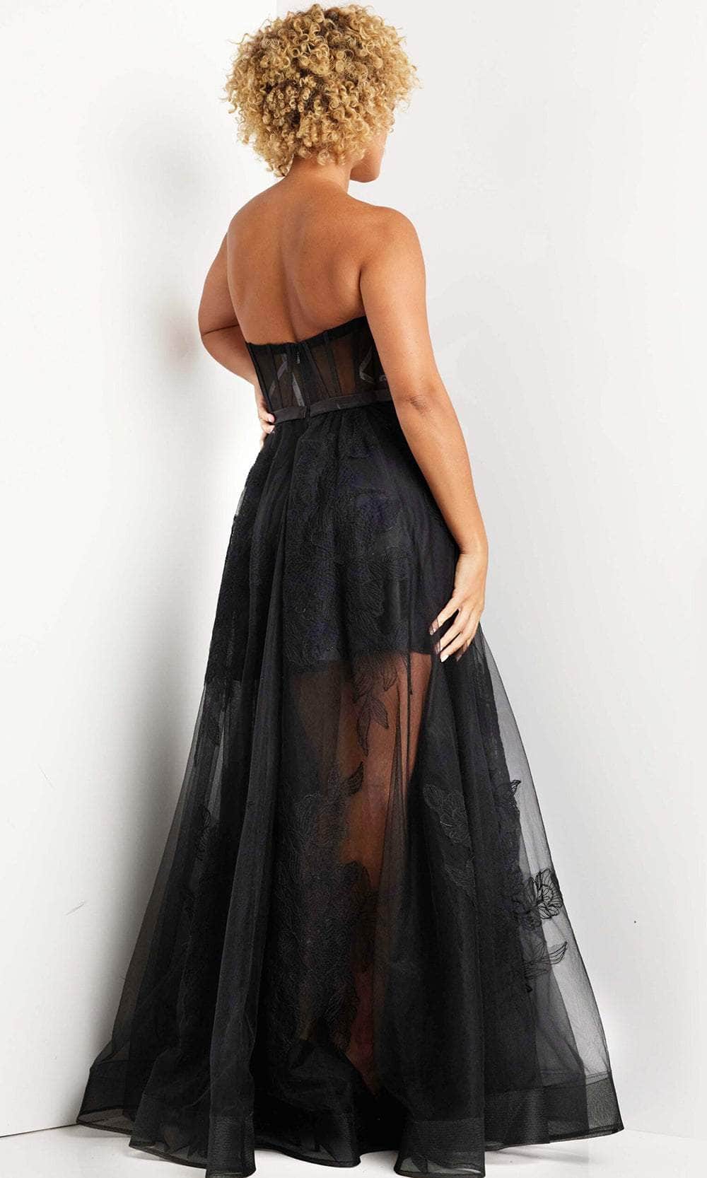 Heighten your visual appeal in this captivating Jovani 37646 prom dress. This dress will make people fall in love with you as this showcases an endearing strapless sweetheart neckline on an illusion corset bodice. It also reveals a mid-open back that is secured by a zipper for a refined finish. Additionally, it also displays a floor-length A-line overskirt on a short sheath skirt. You will own the spotlight as the best-dressed in this Jovani 37646 masterpiece. Model is wearing Black color.