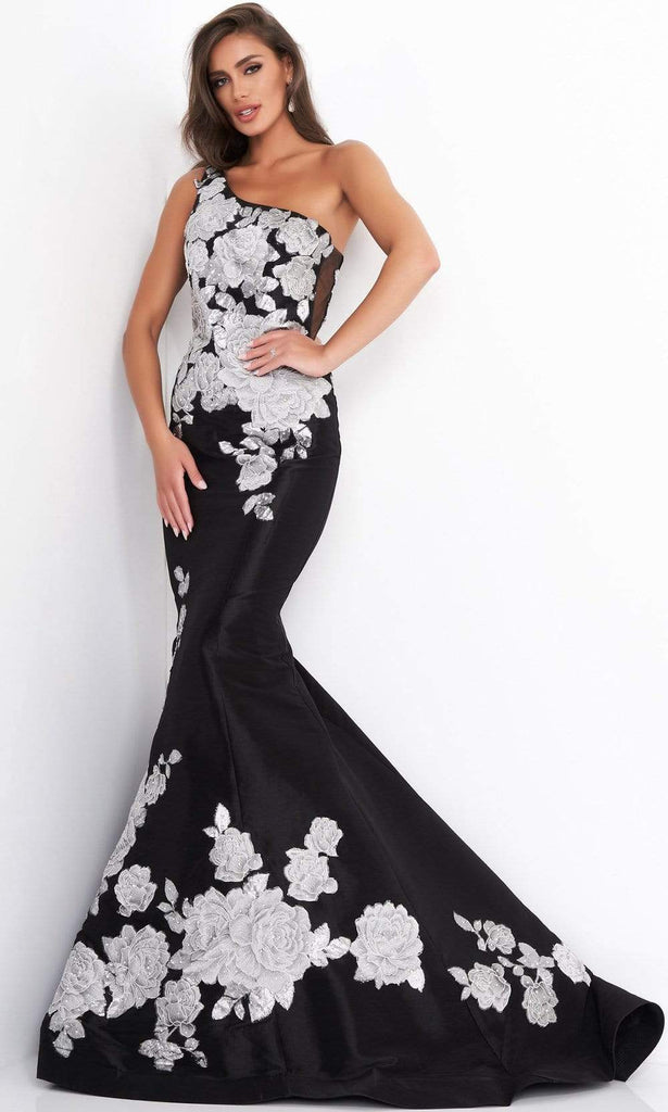 Jovani - 3918 Floral One Shoulder Mermaid Dress