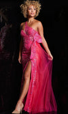 Look immaculately gorgeous in this captivating Jovani 39384 prom dress. You will be admired by everyone as you shimmer and sparkle all night long thanks to the sequin embellishments entirely adorning this dress. This also reveals an endearing asymmetrical neckline on a fitted and sleeveless bodice, complemented by the asymmetrical mid-open back that is enclosed by a zipper for a refined finish. It also showcases a bow on the natural waistline as well as slit on the floor-length sheath skirt. You are more than gorgeous when you wear this unbeatable Jovani 39384 masterpiece. Model is wearing Fuchsia color.