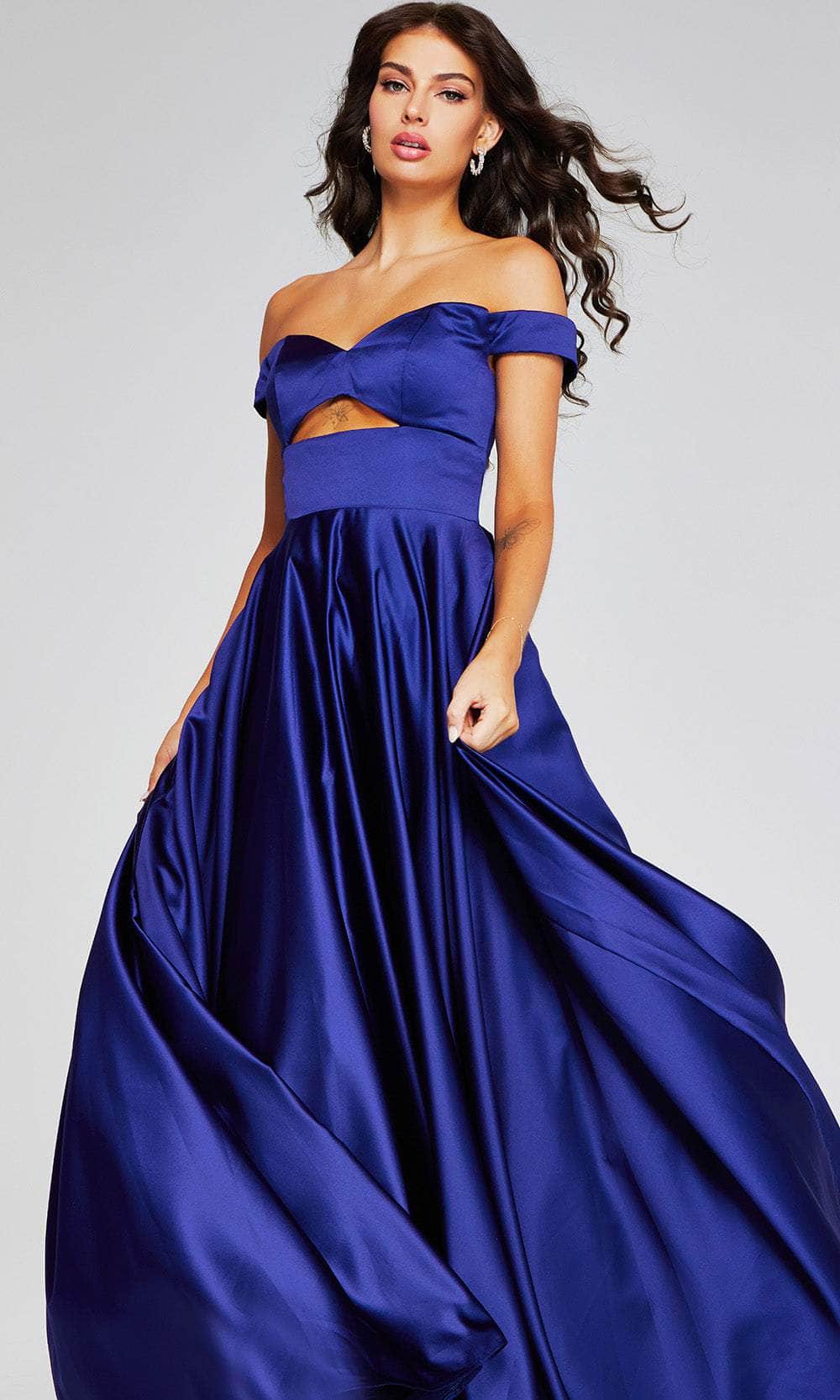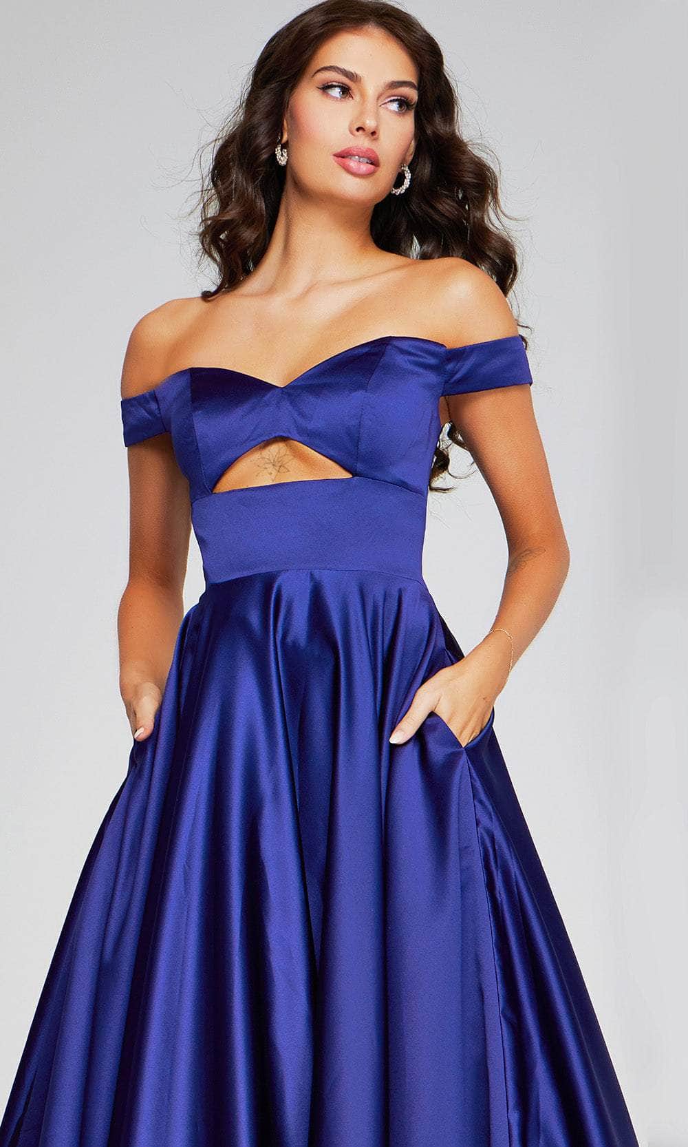 Embody feminine elegance and sophistication with this Jovani 40787. This stunning dress features a sweetheart neckline and off-shoulder sleeves, enhanced by a stylish cut-out detail that adds a unique flair. Secured with a center zipper closure at the back, the gown ensures a perfect fit. The floor-length skirt, accented with side pockets, showcases an A-line silhouette that beautifully highlights your figure and ends with a graceful train. Perfect for formal occasions, the Jovani 40787 exudes timeless beauty and modern charm. Model is wearing Dark Purple color.