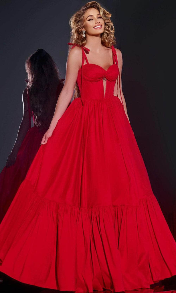 Are you ready for prom season? Let’s find a dress that will make you feel like royalty in this Jovani 44182 gown. The dress boasts a sophisticated corset back design, while the high neck adds a majestic touch. Adorned with beautiful floral embellishments, it offers a romantic and elegant flair. The luxurious floor-length silhouette is made from high-quality fabric, ensuring you stand out with every step. Whether it's a gala or a black-tie event, this gown promises to make you feel like royalty, embodying timeless elegance and sophistication. Elevate your style with Jovani 44182 gown, an exquisite ballgown perfect for formal occasions. Model is wearing the Red color.