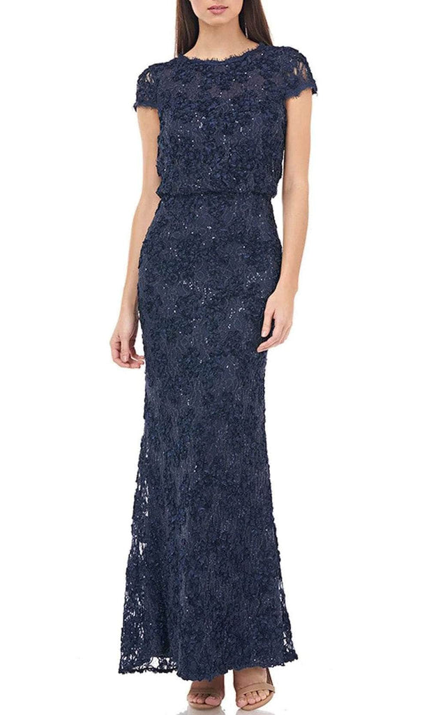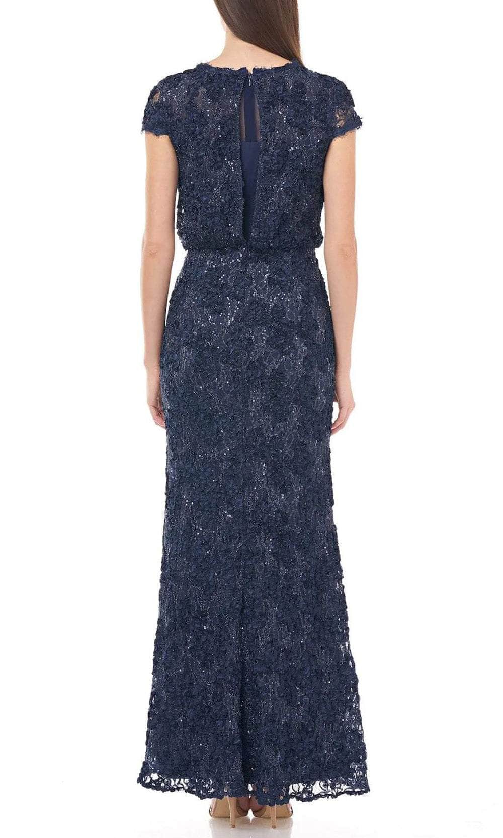 JS Collections 866657 is an utterly dazzling choice for memorable social occasions. Expertly crafted from luxe lace and embellished with sparkling sequins, this full-length dress features a blouson bodice, cap sleeves, and a unique keyhole cutout on the back. Lace eyelash trim completes the look, both lending a subtle hint of refinement to the overall design. With its timeless silhouette and intricate details, this exceptional piece is sure to make a stylish statement. Model is wearing the Navy color.