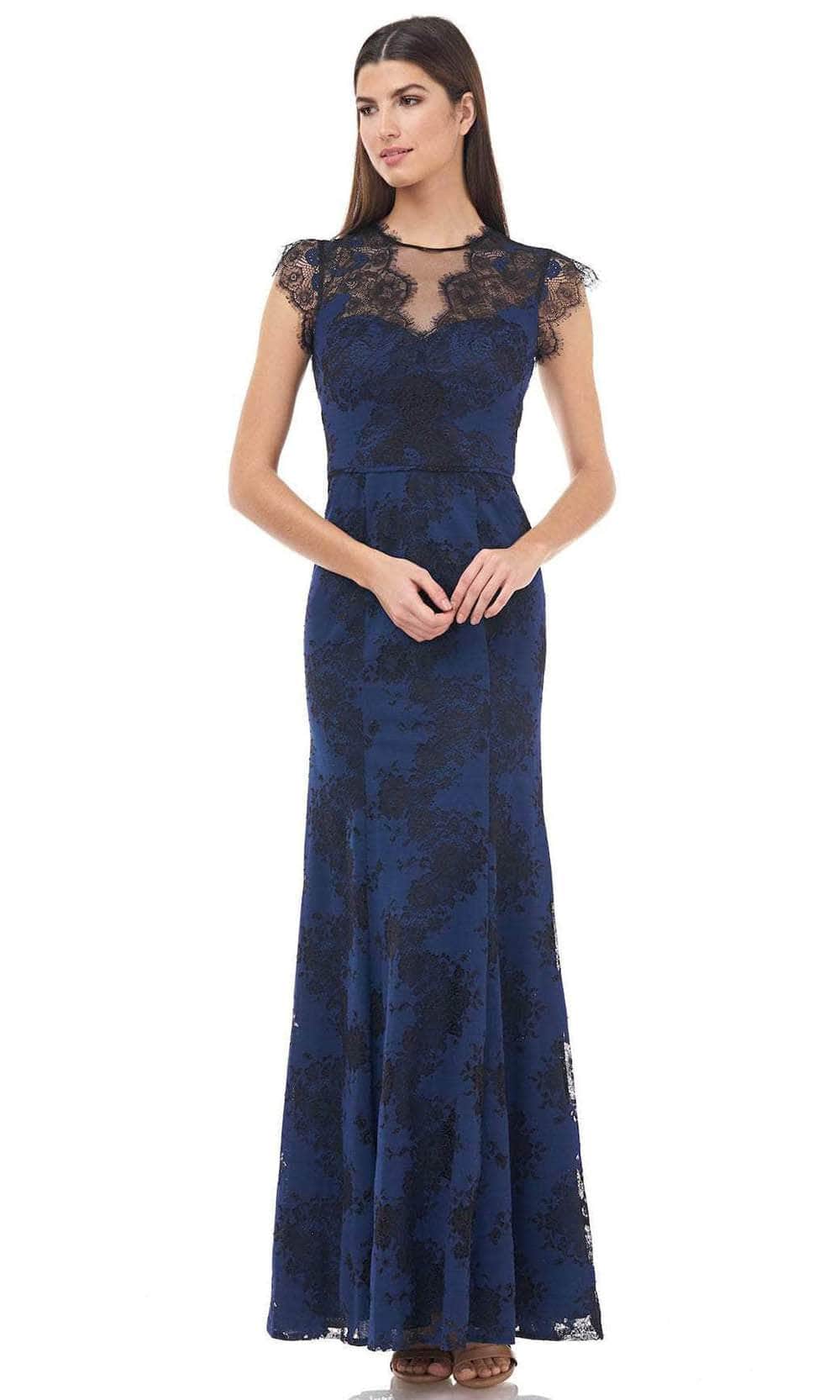 Astound everyone with the scintillating beauty of this JS Collections 866732 creation. Gorgeous in sheer lace fabric, this dress features sheer jewel high-neckline on a sweetheart bodice with scallop edging styles in the neck and sleeves, matched with a sheer back secured with a center zipper. Cinched at the natural waist, the sheath skirt adorns in full length hem. Saunter on the floor in this mesmerizing JS Collections masterpiece. Couture Candy is committed to provide the very best when it comes to dresses for every occasion, and we are delighted to have JS Collections on our side to aid us in delivering exquisite dresses for various occasions that are sure to make heads turn. Model is wearing Navy Black color.