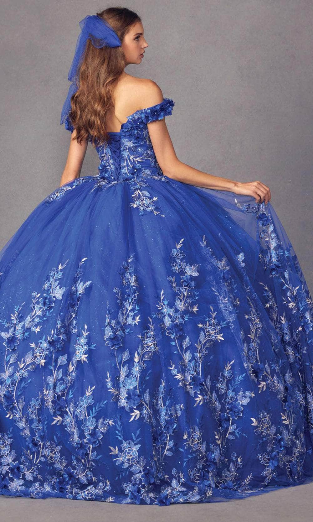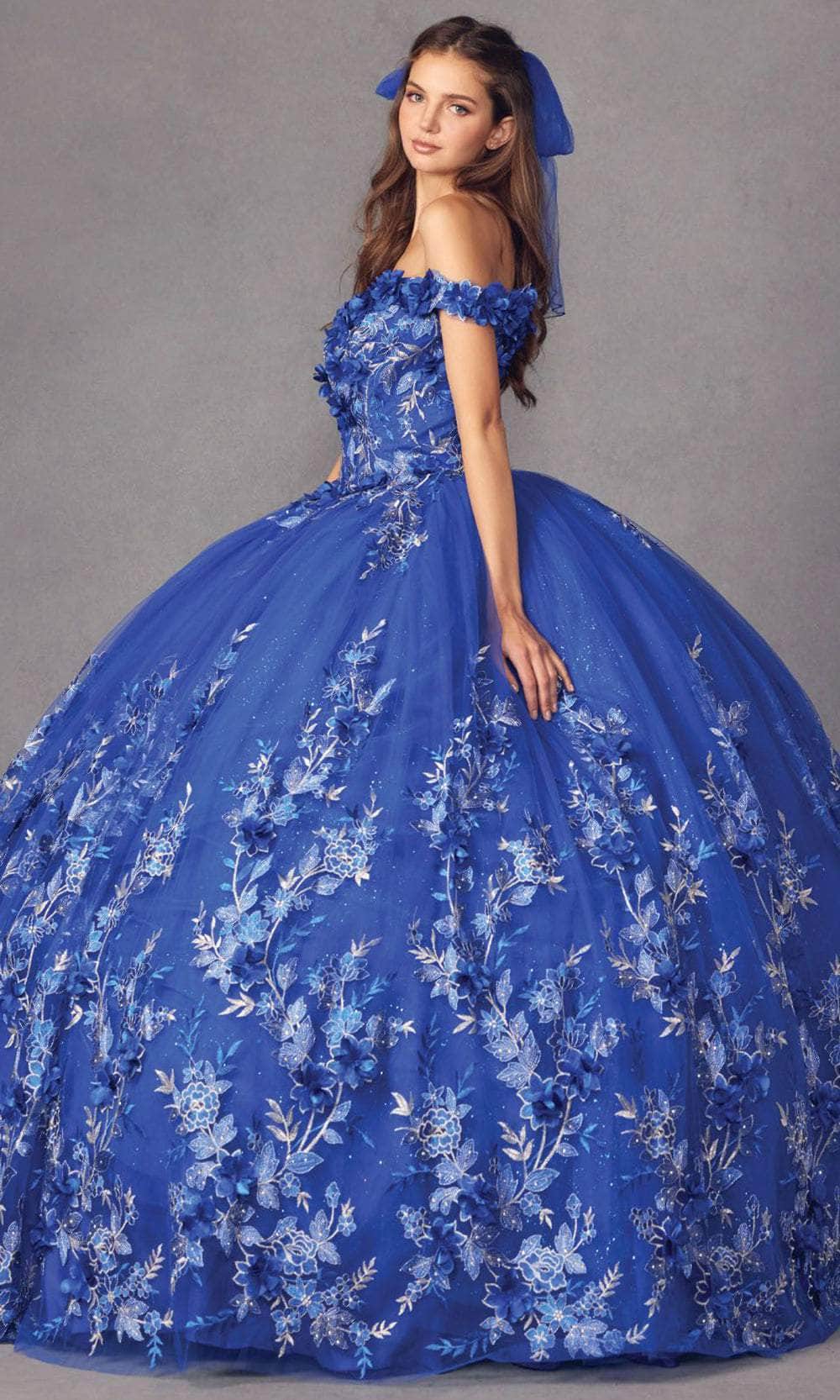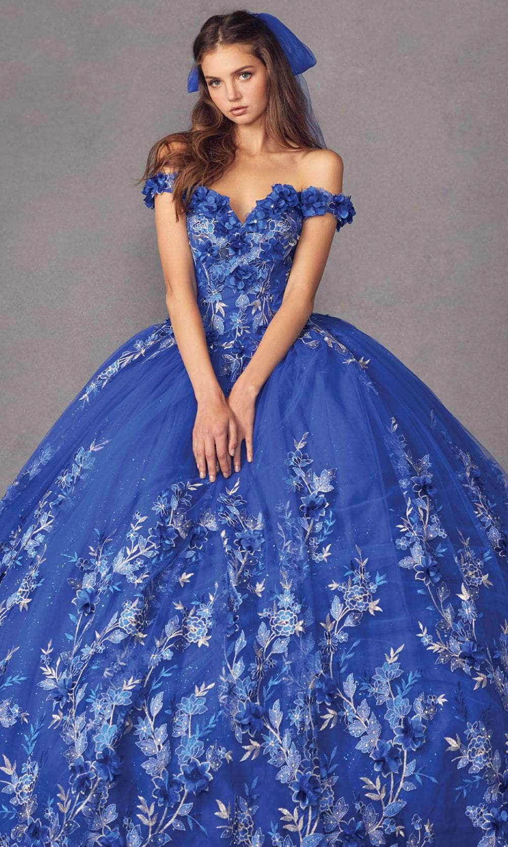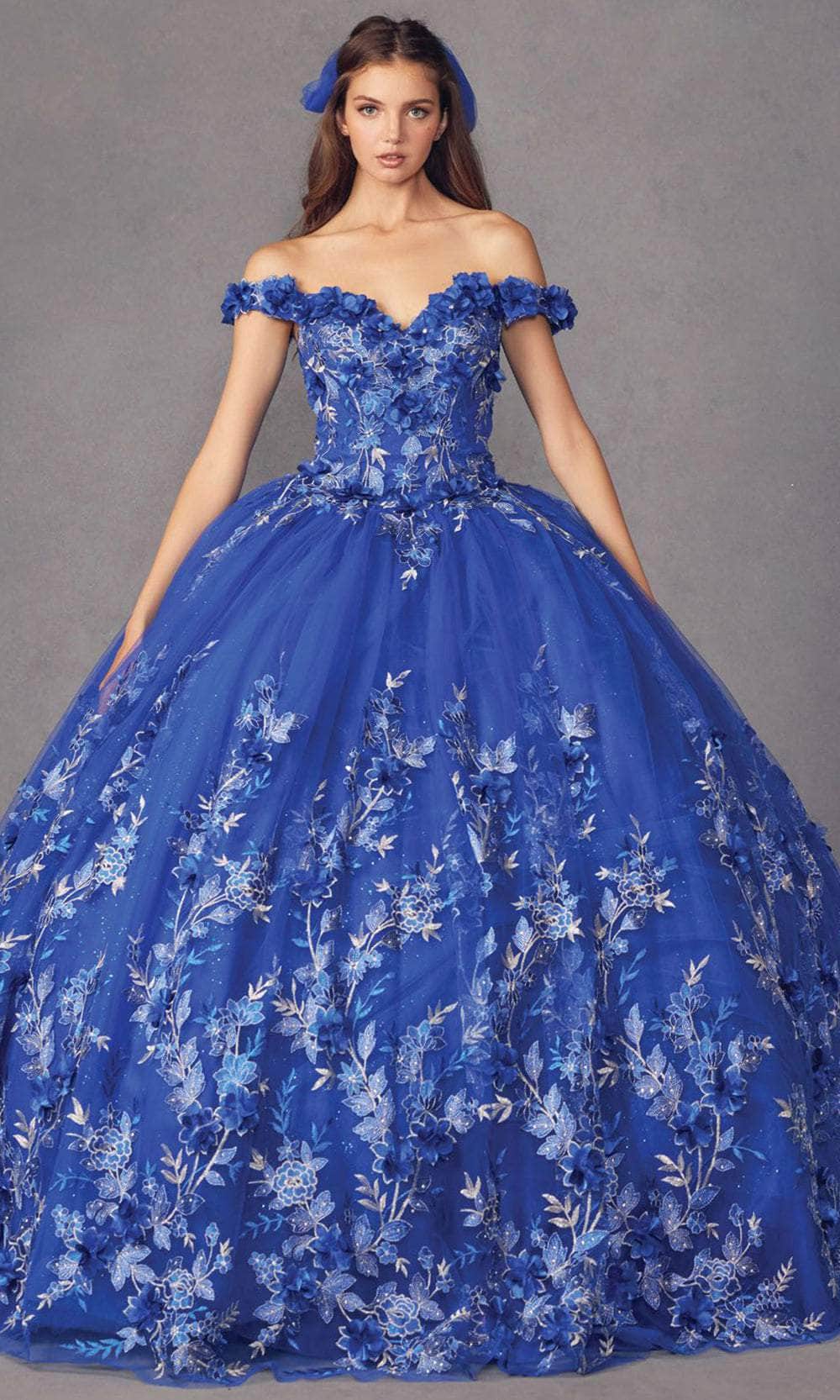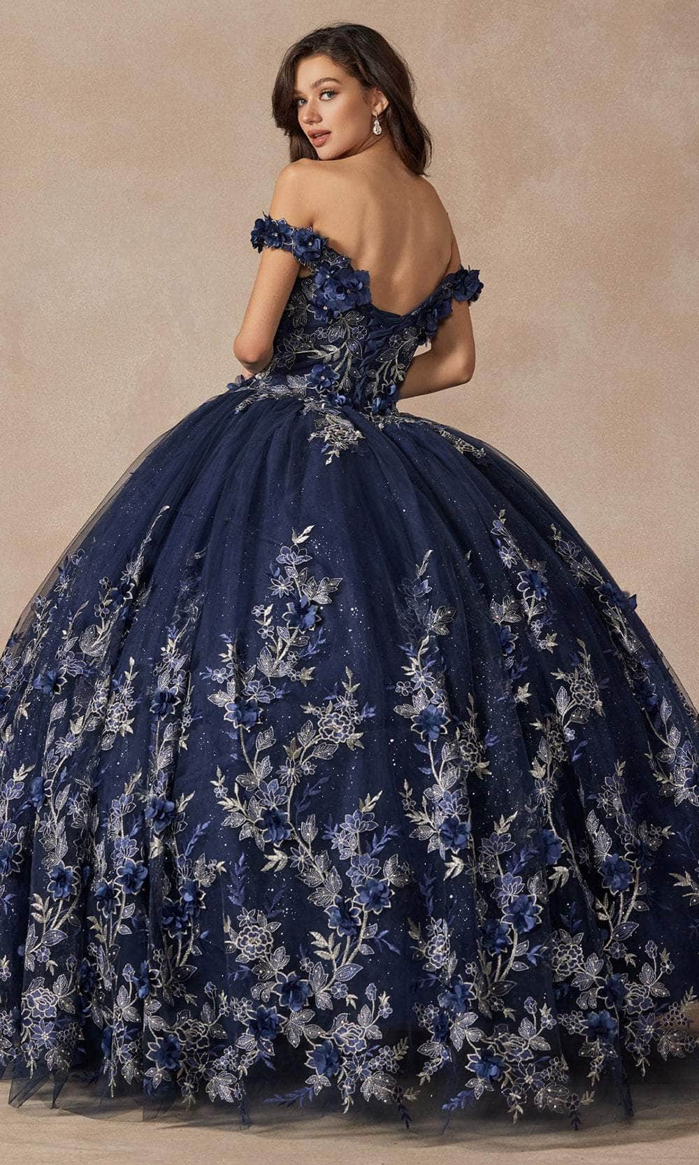 Look immaculately gorgeous as you flaunt in this Juliet Dresses 1447 ball gown. Displaying a floral appliques all over, this also shows an endearing off-shoulder neckline and a basque waist. It has glittery tulle skirt with a ballgown silhouette finishing down to its full length while the back exhibits a mid-open back with a lace up closure. Make everyone fall for you wearing this Juliet Dresses 1447 masterpiece. Models are wearing the Burgundy, Navy Blue, and Royal Blue colors.