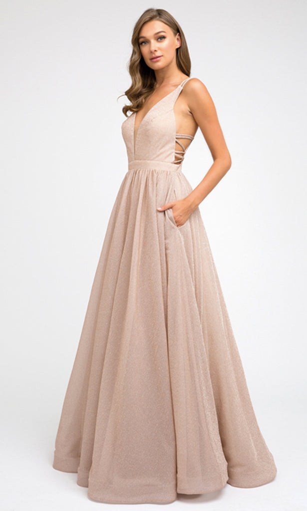 Sleek radiance and contemporary appeal make this Juliet Dresses 201 an inspired choice for formal evenings. It features a daring plunging V-neckline supported by double spaghetti straps, complementing a fitted bodice that enhances the figure. The natural waistline gives way to a long glitter skirt with practical pockets, combining glamour with function. Juliet Dresses 201 offers a modern A-line silhouette that brings shine and sophistication together, perfect for events where elegance and ease are essential. Models are wearing Champagne Multi, Navy Blue, and Silver colors.