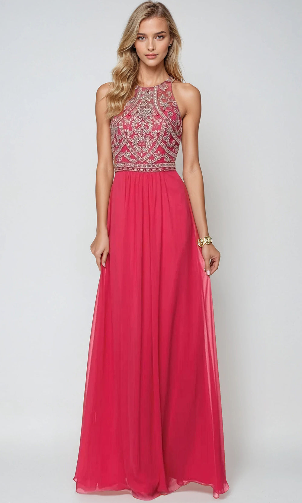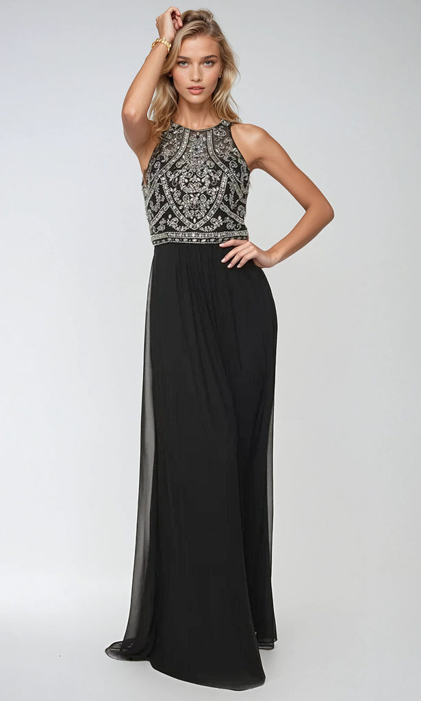 | Details: | Sleeveless, Beaded Embellishment, Cutout Back, Floor-Length Hem |