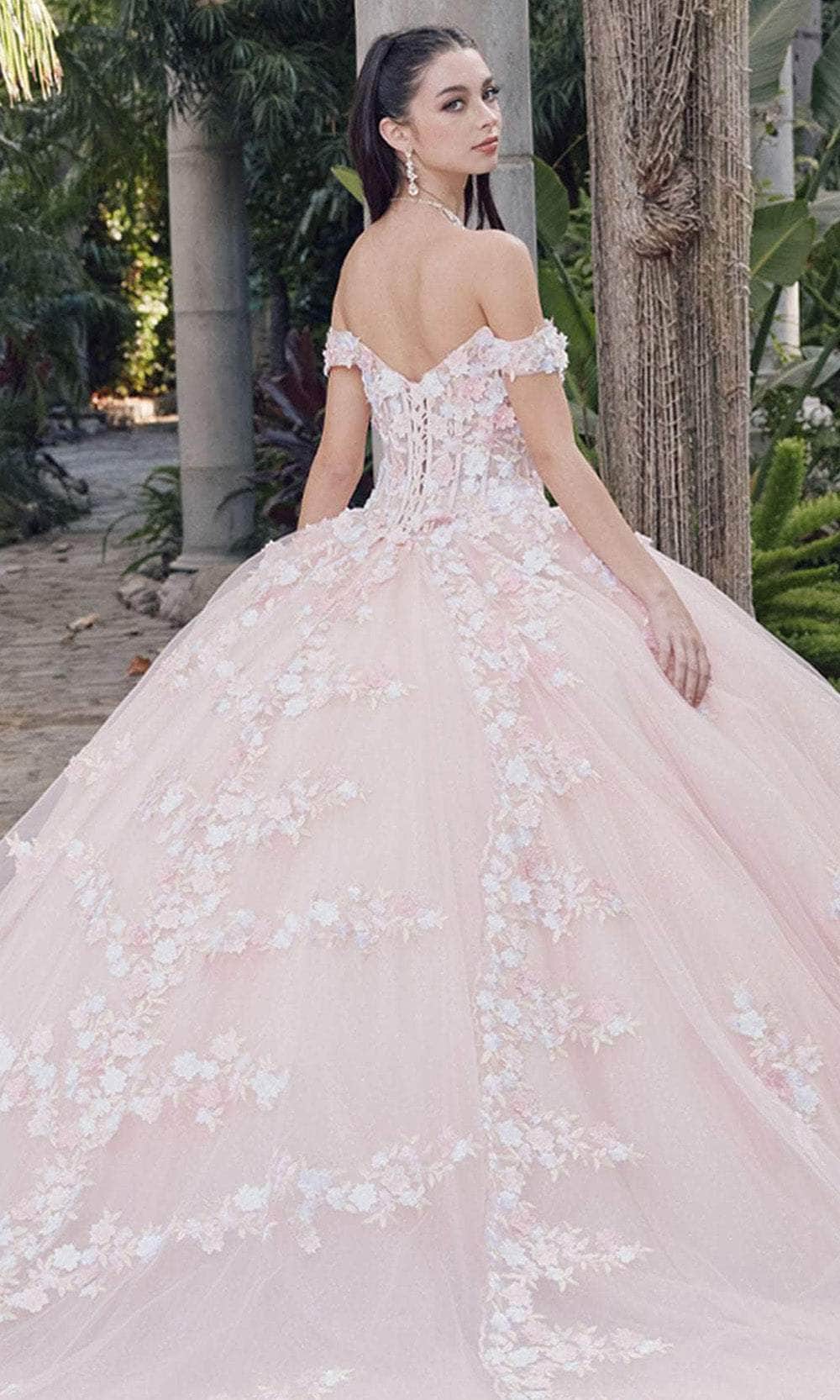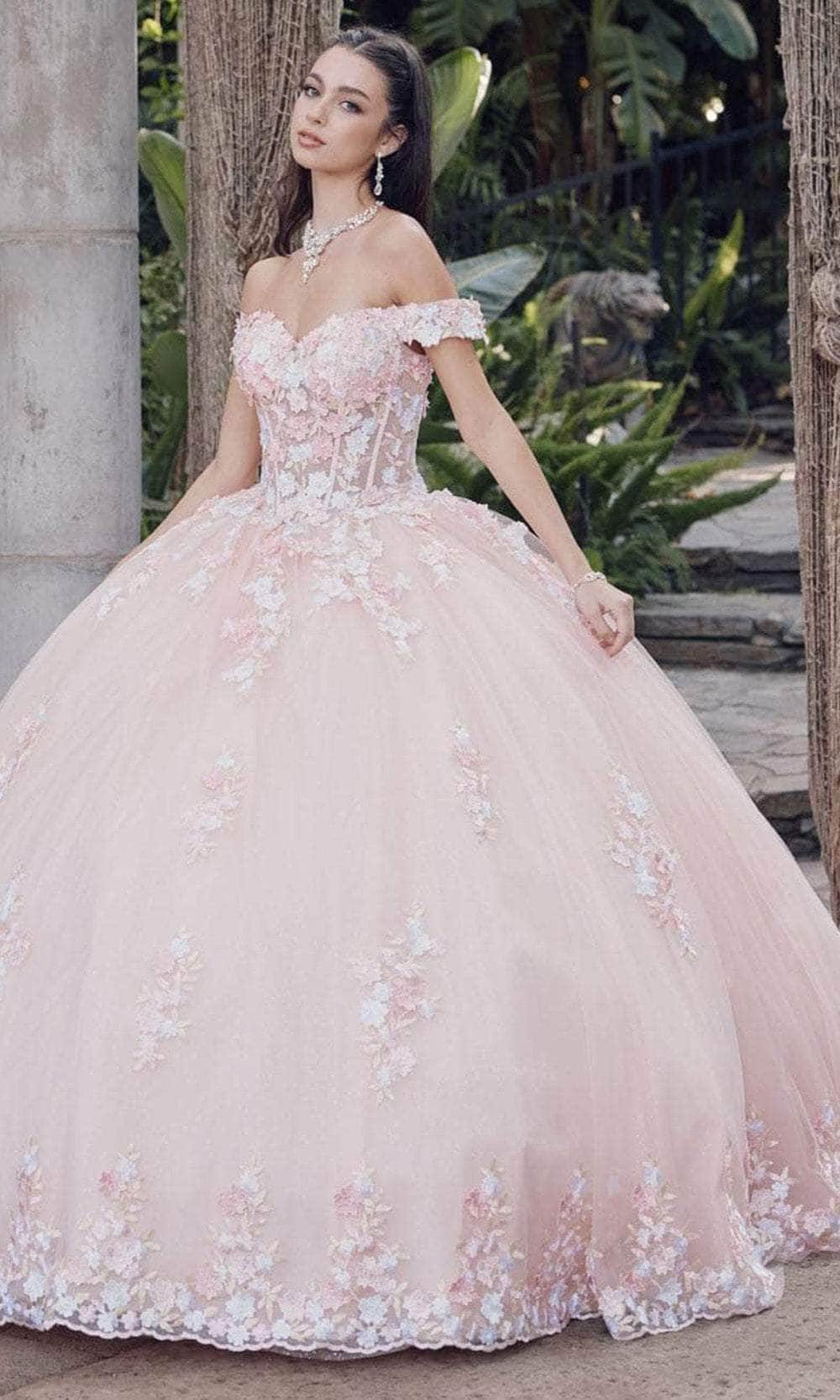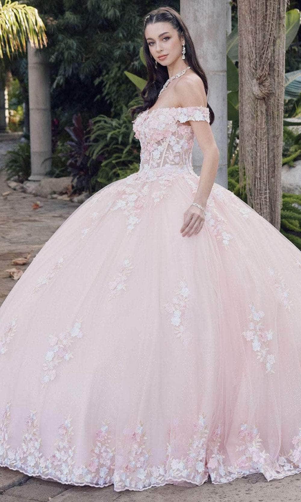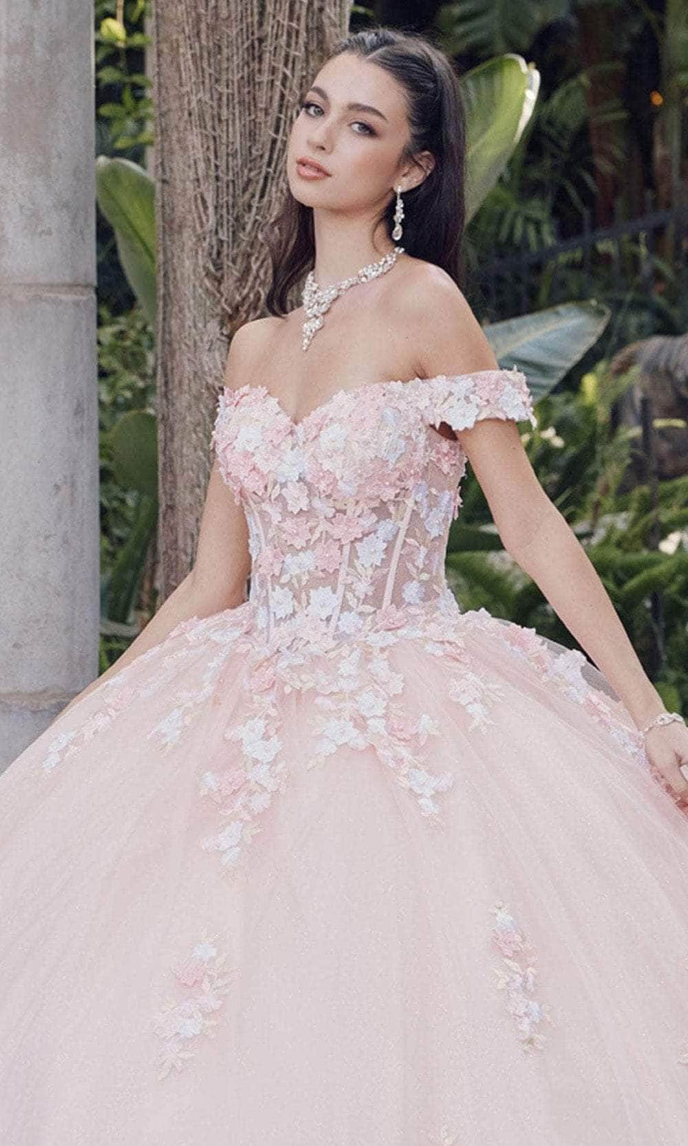 Enhance sophistication in Juliet Dresses JT1460J, an alluring ballgown that is sure to captivate. The off-the-shoulder sheer corset bodice crowned with a sweetheart neckline radiates sophistication and romance with its elaborate 3D floral appliques. Designed to make you feel like royalty on any special occasion, this gown is a tribute to timeless grace and contemporary allure. Juliet Dresses JT1460J, where every detail exudes timeless beauty and exquisite elegance, will elevate your appearance. Model is wearing Blush color.