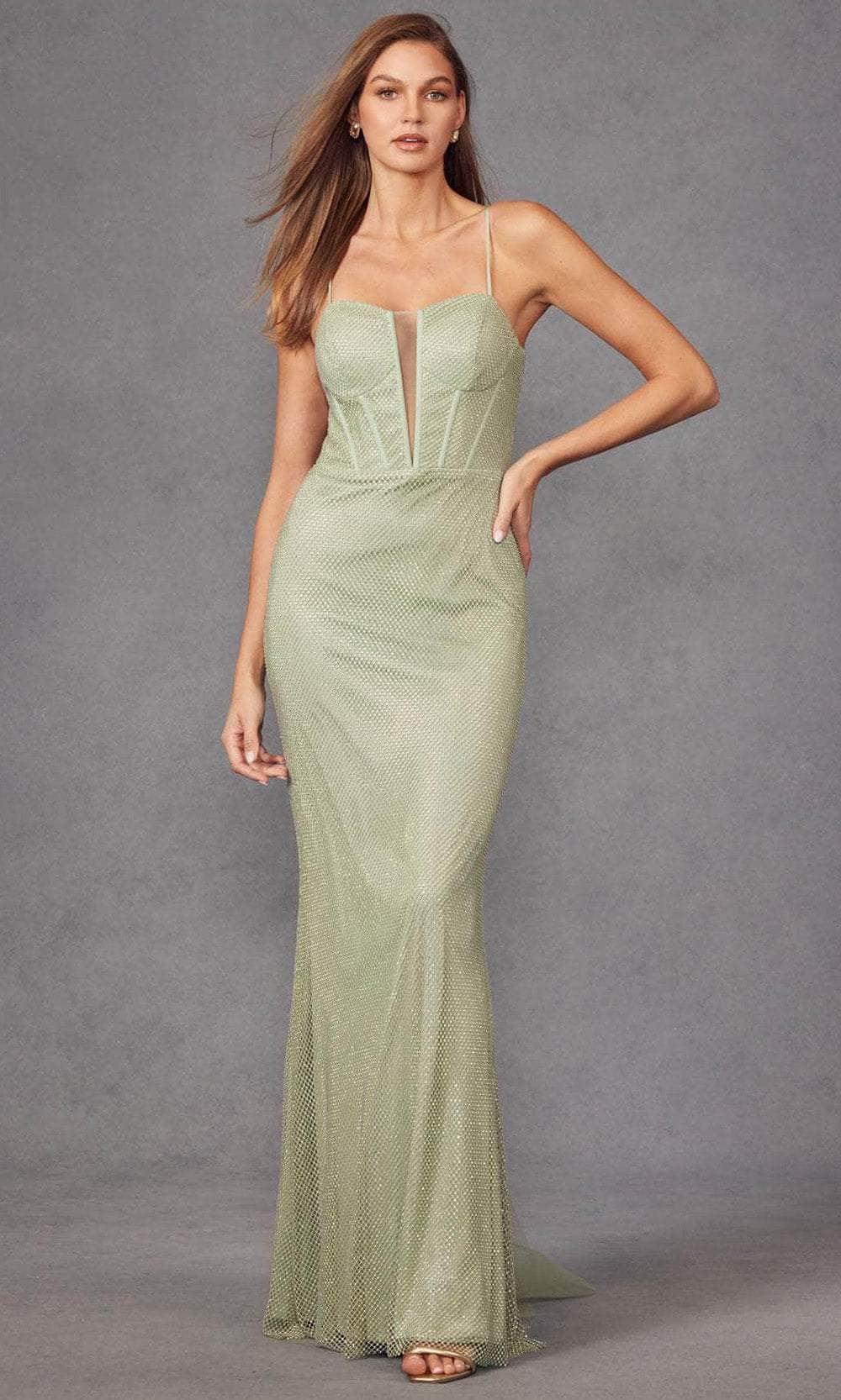 Enjoy the height of sophistication in Juliet Dresses JT2470S. This captivating outfit combines charm and refinement, featuring a rhinestone net mesh corset that expertly shapes your figure. The tailored skirt accentuates your curves with each stride as it cascades beautifully. This dress is ideal for prom or any other elegant event because it emits modern allure and timeless charm. With the exquisite Juliet Dresses JT2470S, where sophistication meets breathtaking style, make a statement that will fascinate you. Models are wearing Barbie Pink and Sage Green colors.