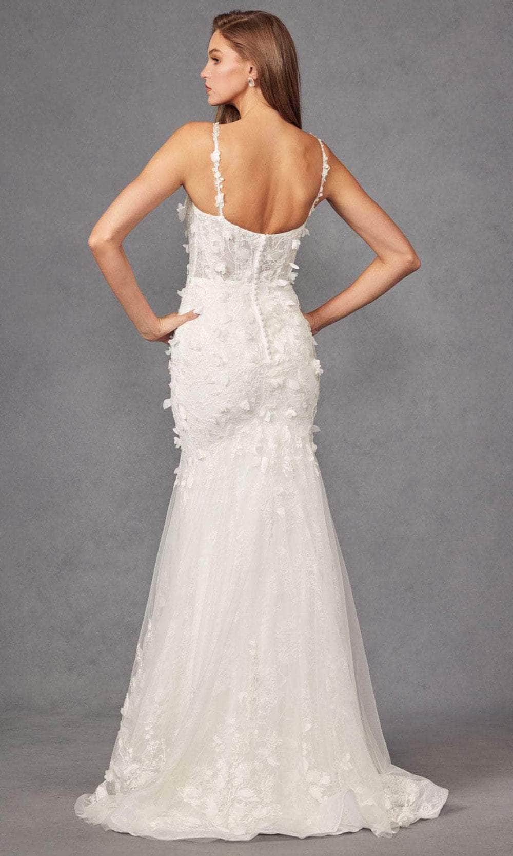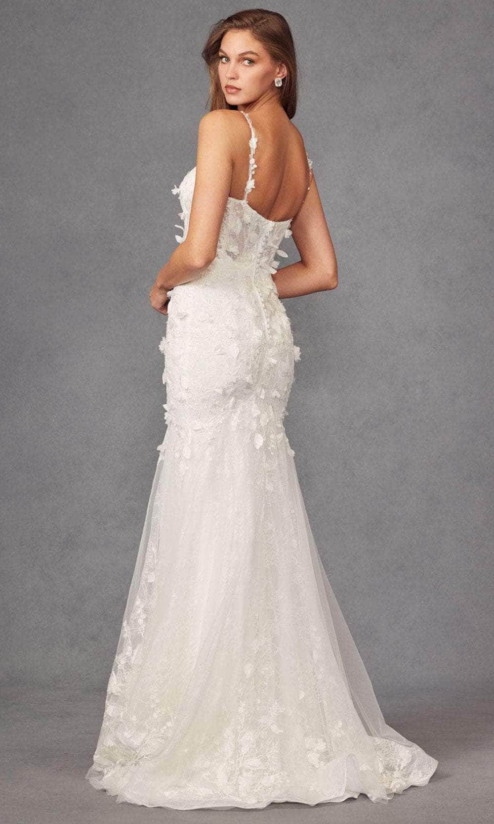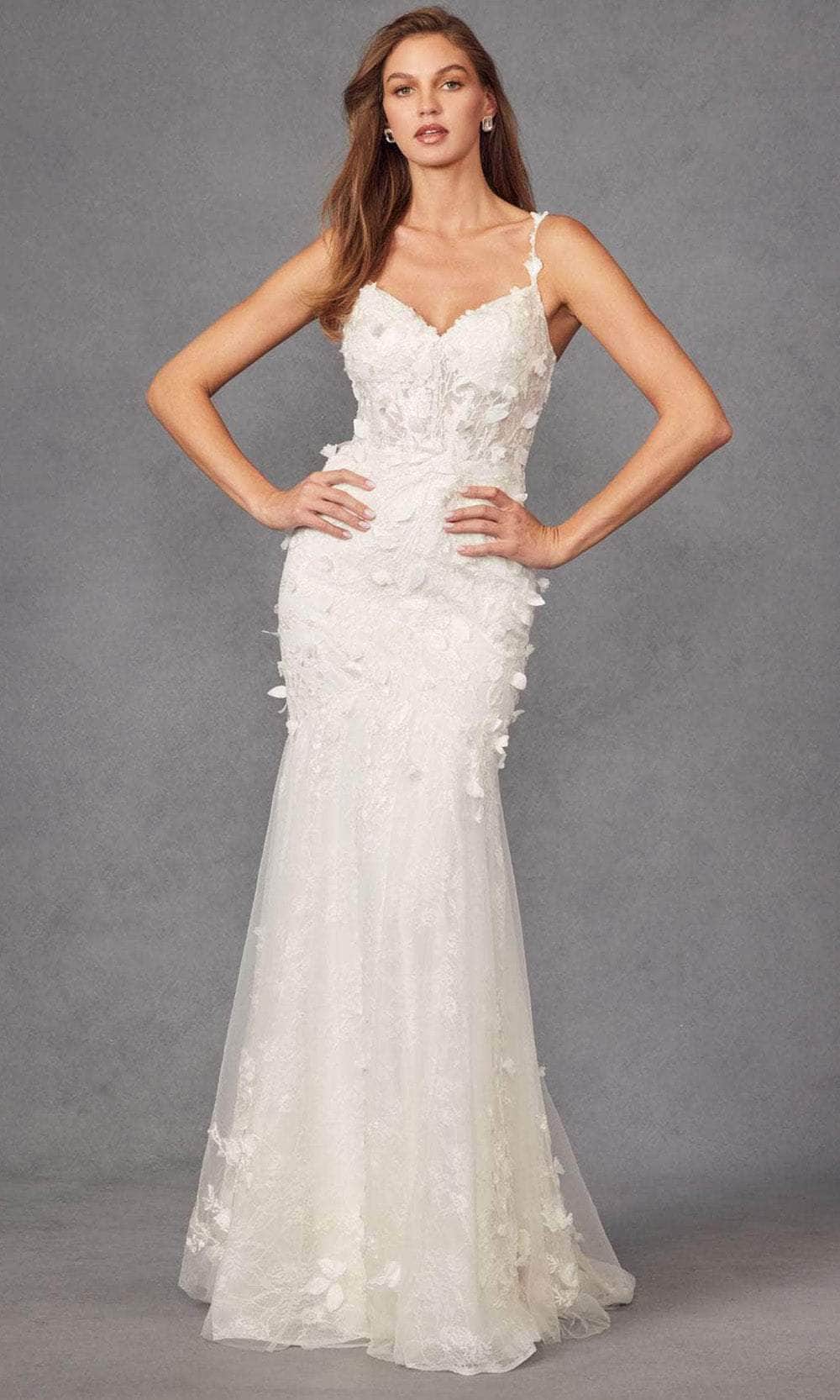 Savor classic elegance with Juliet Dresses JT2475UW, a mesmerizing mermaid-style bridal gown adorned with exquisite floral embellishments. Delicate 3D florals, intricate embroideries, and shimmering sequins enhance this enchanting ensemble, exuding opulent charm. The sleeveless corset bodice features a graceful sweetheart neckline, embellished with buttons and fastened by a central zipper at the back, ensuring a flawless fit. Complete with a flowing train, Juliet Dresses JT2475UW encapsulates the essence of romance and sophistication, epitomizing bridal beauty at its finest. Model is wearing Off-White color.