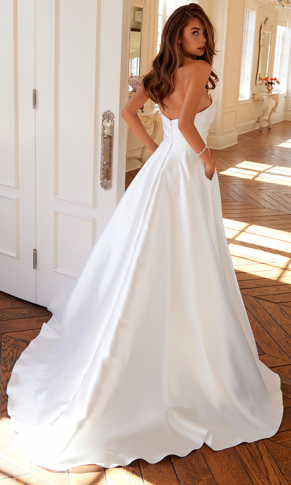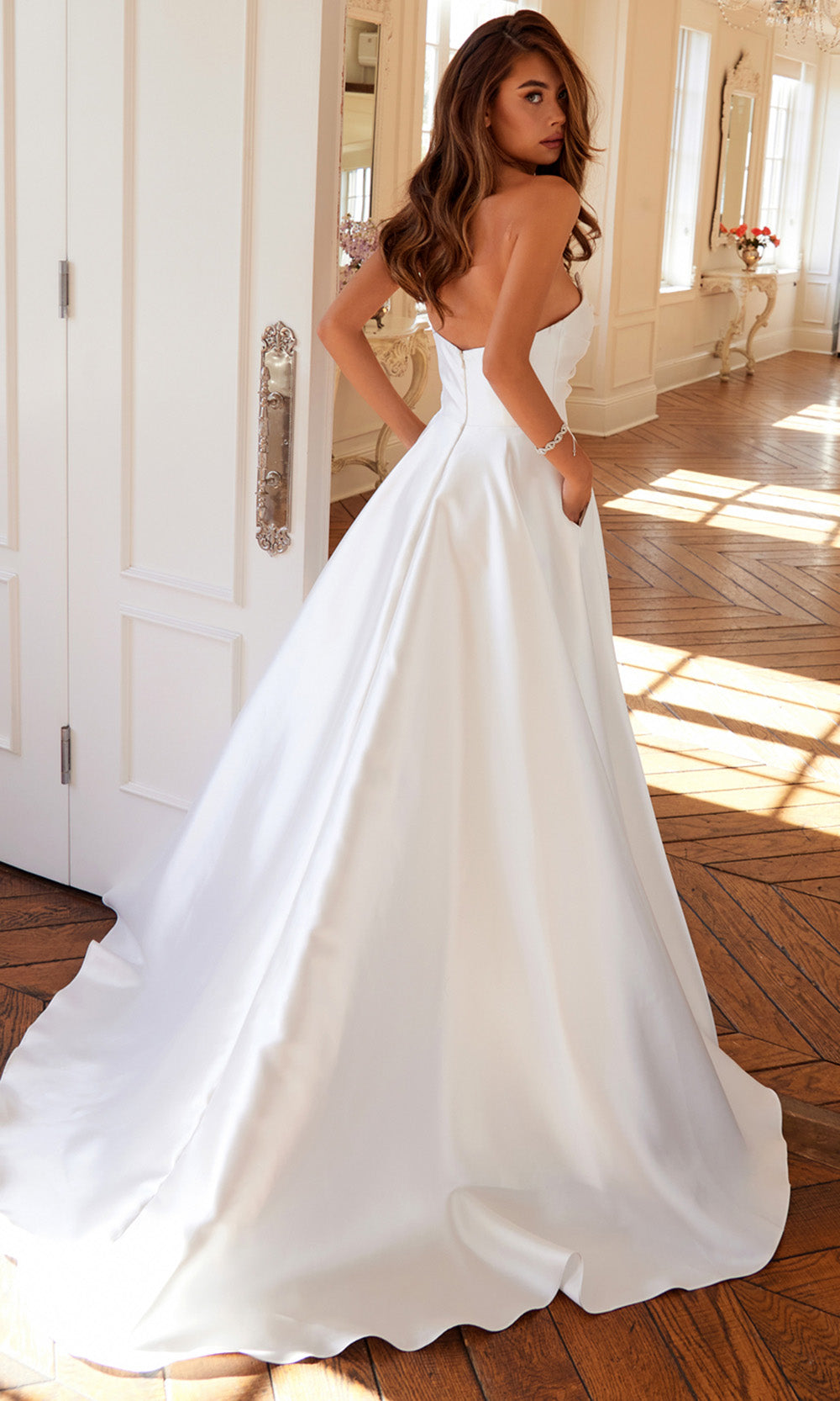 | Details: | Strapless, Pleated Detail, High Slit, Back Zipper Closure, Pockets, Sweep Train |