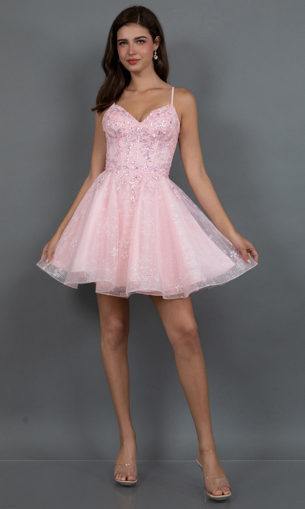 Elegant and ethereal, the Juliet Dresses JT985L captures a fairytale essence through its intricately detailed design. The sweetheart neckline complements the structured bodice, which is beautifully adorned with lace floral embroidery and light-catching beading. Thin shoulder straps keep the silhouette delicate, while the tulle A-line skirt offers a soft, floating appearance. Each detail contributes to an overall sense of romance and sophistication. Whether you are celebrating under lights or creating your moment in photos, the Juliet Dresses JT985L brings the magic to life. Models are wearing Bahama Blue, Blush, Champagne, and Lilac colors.