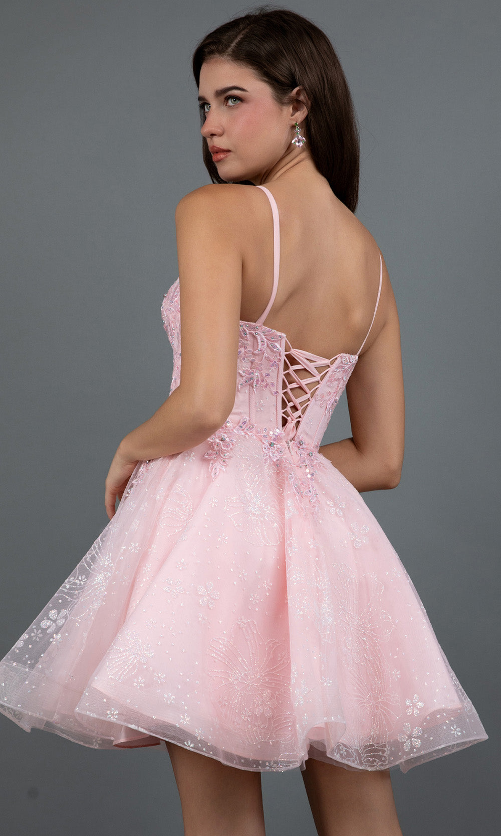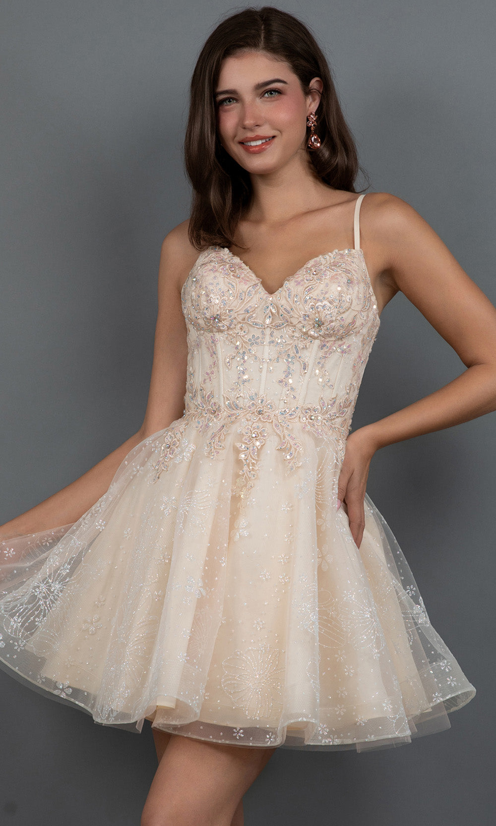 | Details: | Lace Floral Embroidery, Beaded, Thin Straps, Structured Corset Bodice, Lace-Up Back |