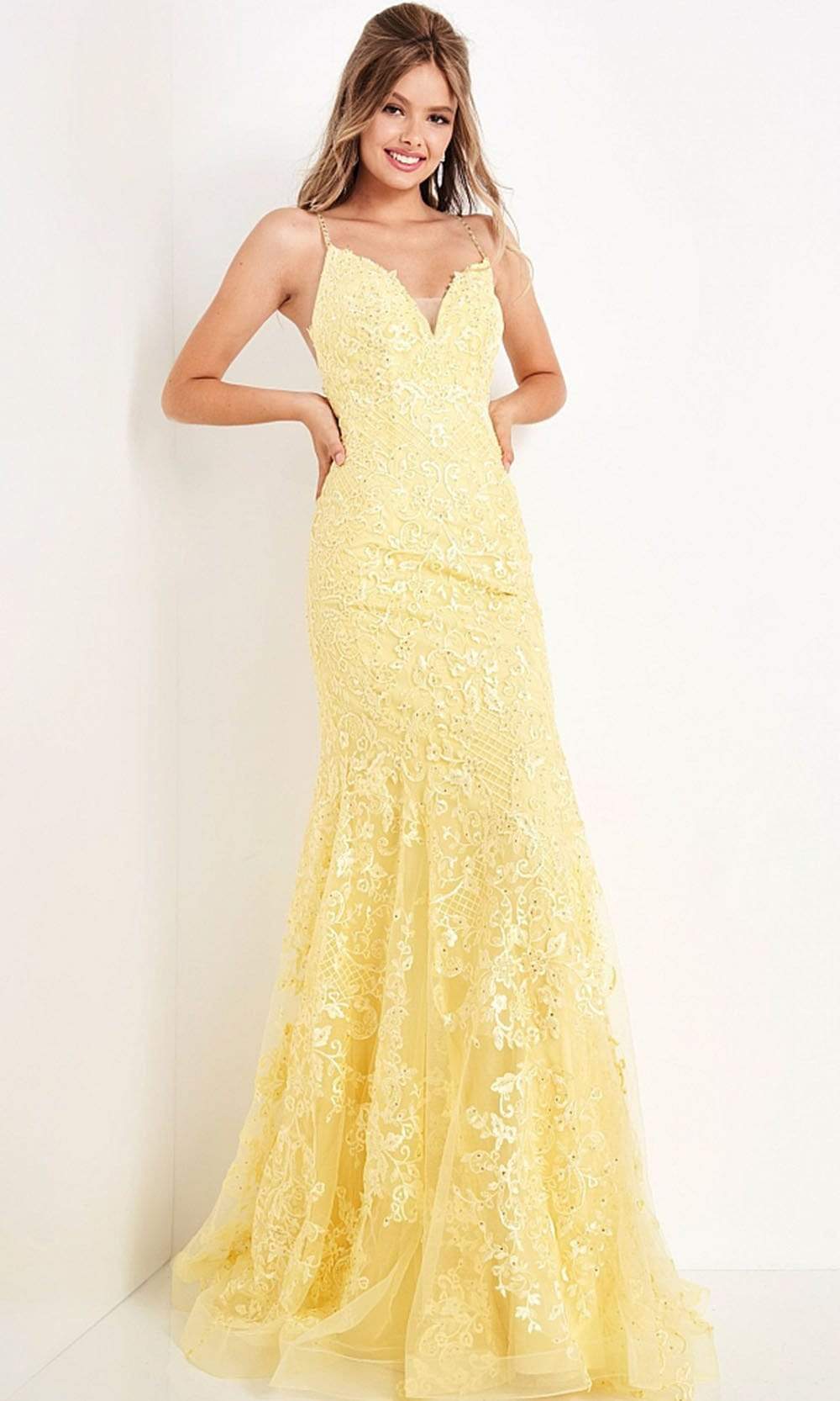 Exude a charm that is meant to mesmerize the elite crowd in this gorgeously decadent dress by JVN by Jovani JVN02258. Flaunts a sleeveless, plunging v neckline with shoulder straps. The fitted bodice shows off a sexy open back. The skirt fits at thighs and flares at the bottom to a sweep train finish. Glide into that spectacular black-tie event like an ethereal vision as you flaunt this gorgeous JVN by Jovani gown.