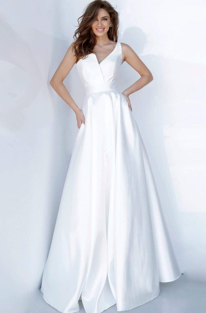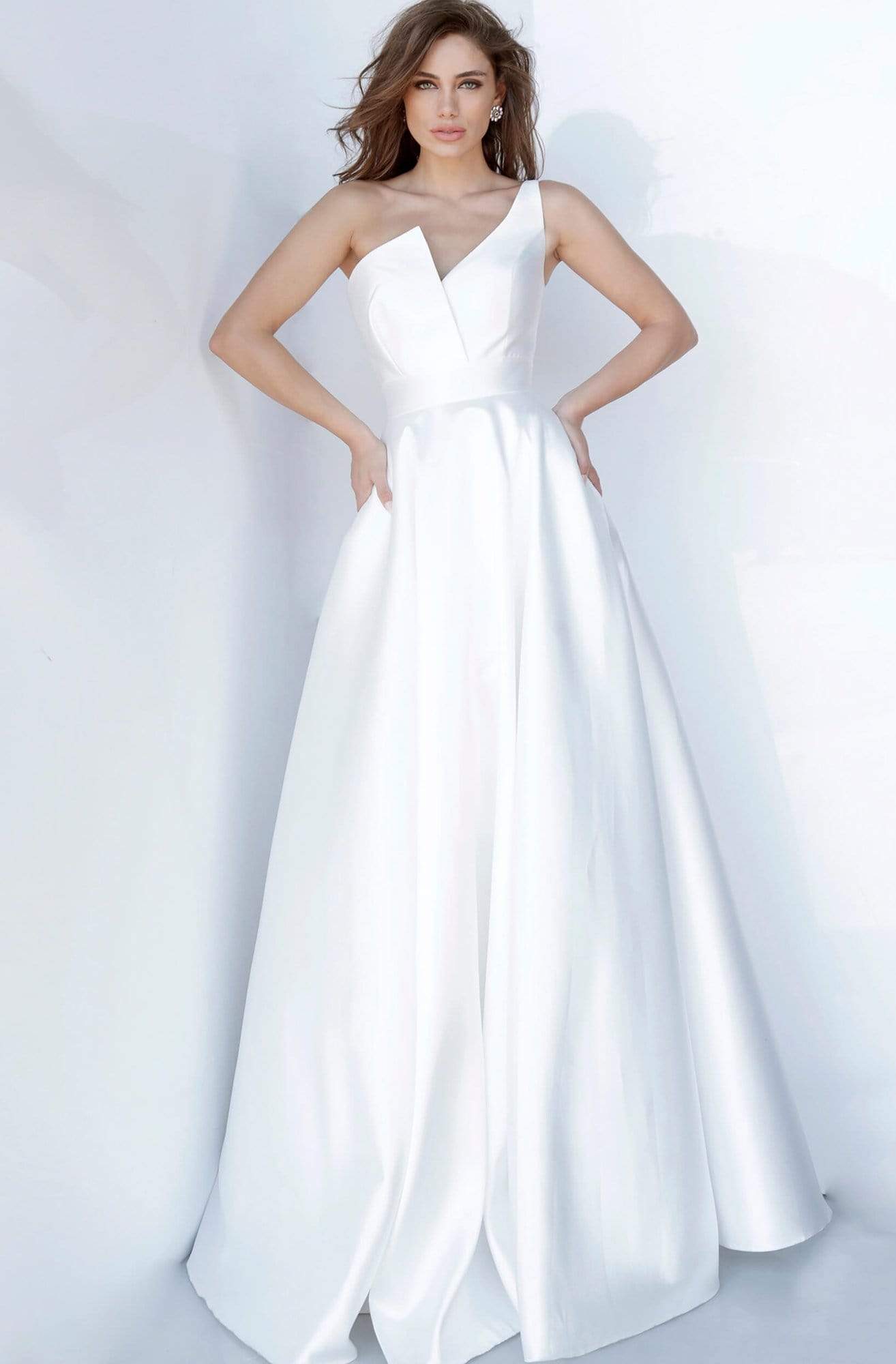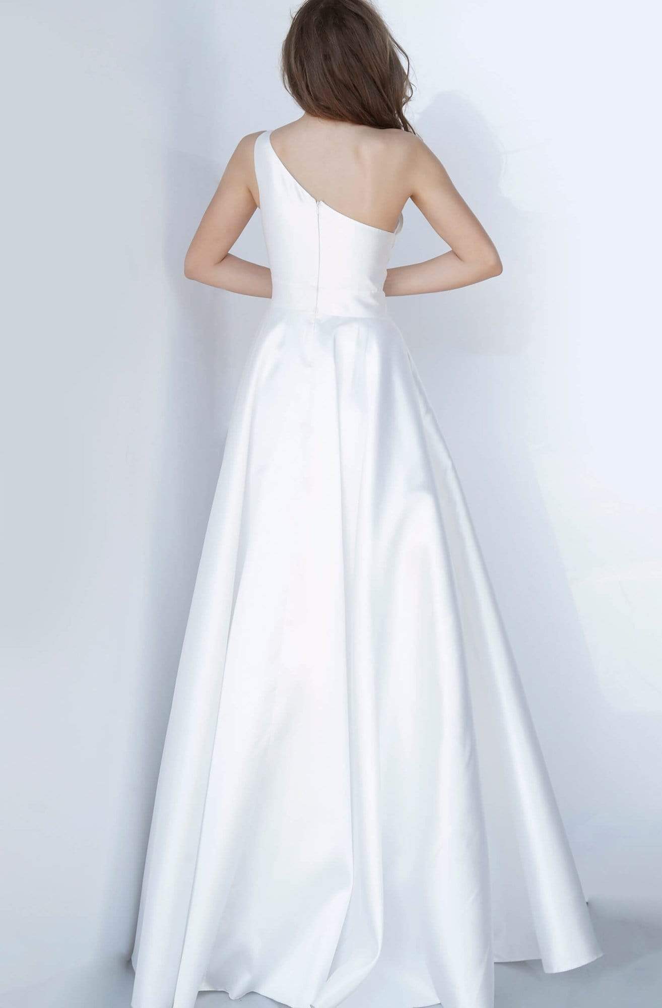 Let this dress by JVN by Jovani JVN3930 take you to any party in style. This mikado gown features a sleeveless, asymmetric neckline with a fitted bodice and a zipper closure. The skirt is tailored in a full-length A-line silhouette. Waltz into the party looking fabulous in this JVN by Jovani dress.