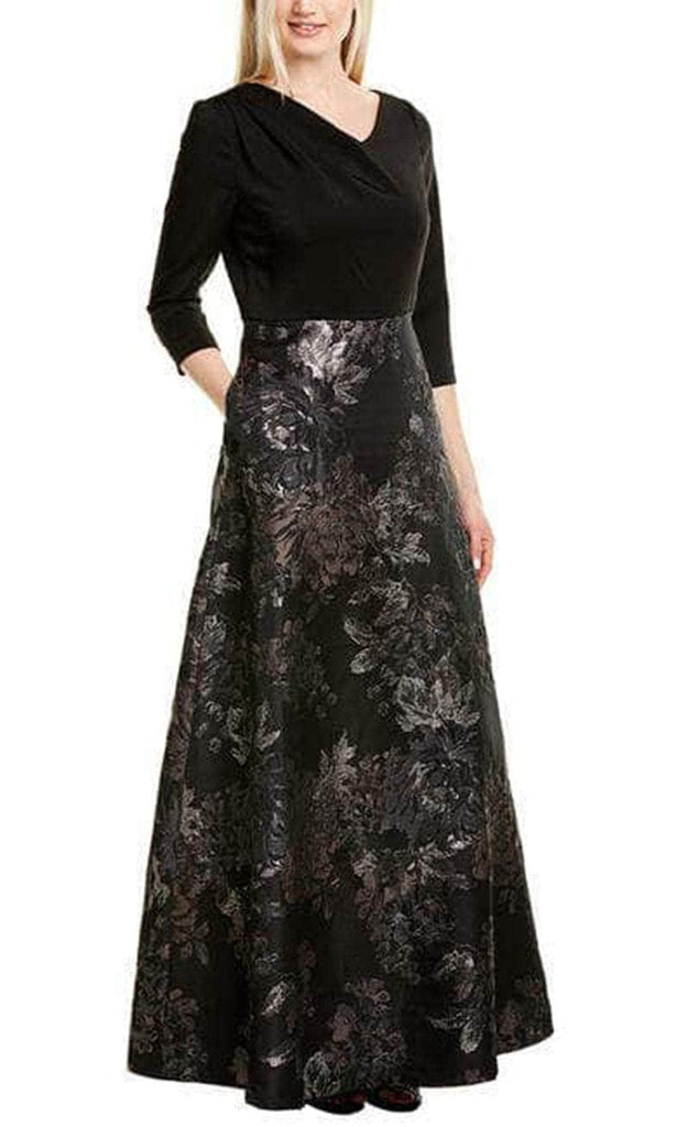 Stand out in every occasion with this classic creation by Kay Unger 5511409. This quarter length sleeves dress showcases a fitted bodice framed in an asymmetrica l V-neckline with pleated accents on the shoulder side and secured by a zipper closure at the back. The stunning woven fabric highlights the A-line skirt as it flatters any figures and gracefully flows down in a floor-length hem. Elegance and style are described in this Kay Unger dress. Couture Candy is committed to provide the very best when it comes to dresses for every occasion, and we are delighted to have Kay Unger on our side to aid us in delivering exquisite dresses for various occasions that are sure to make heads turn. Model is wearing Slate Multi color.