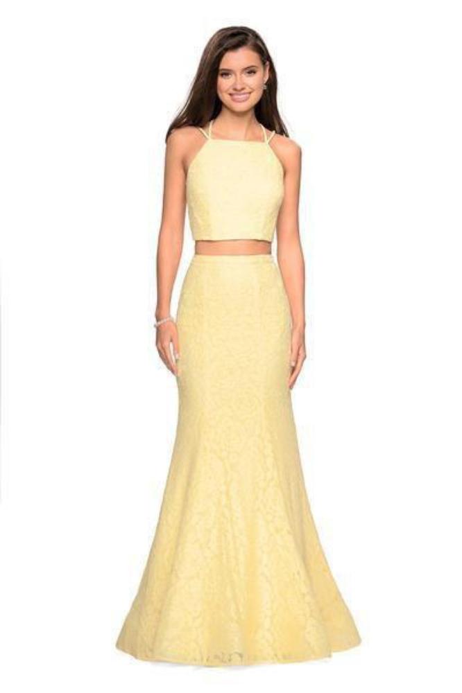 La Femme - 27452 Strappy Two Piece Halter Trumpet Gown
