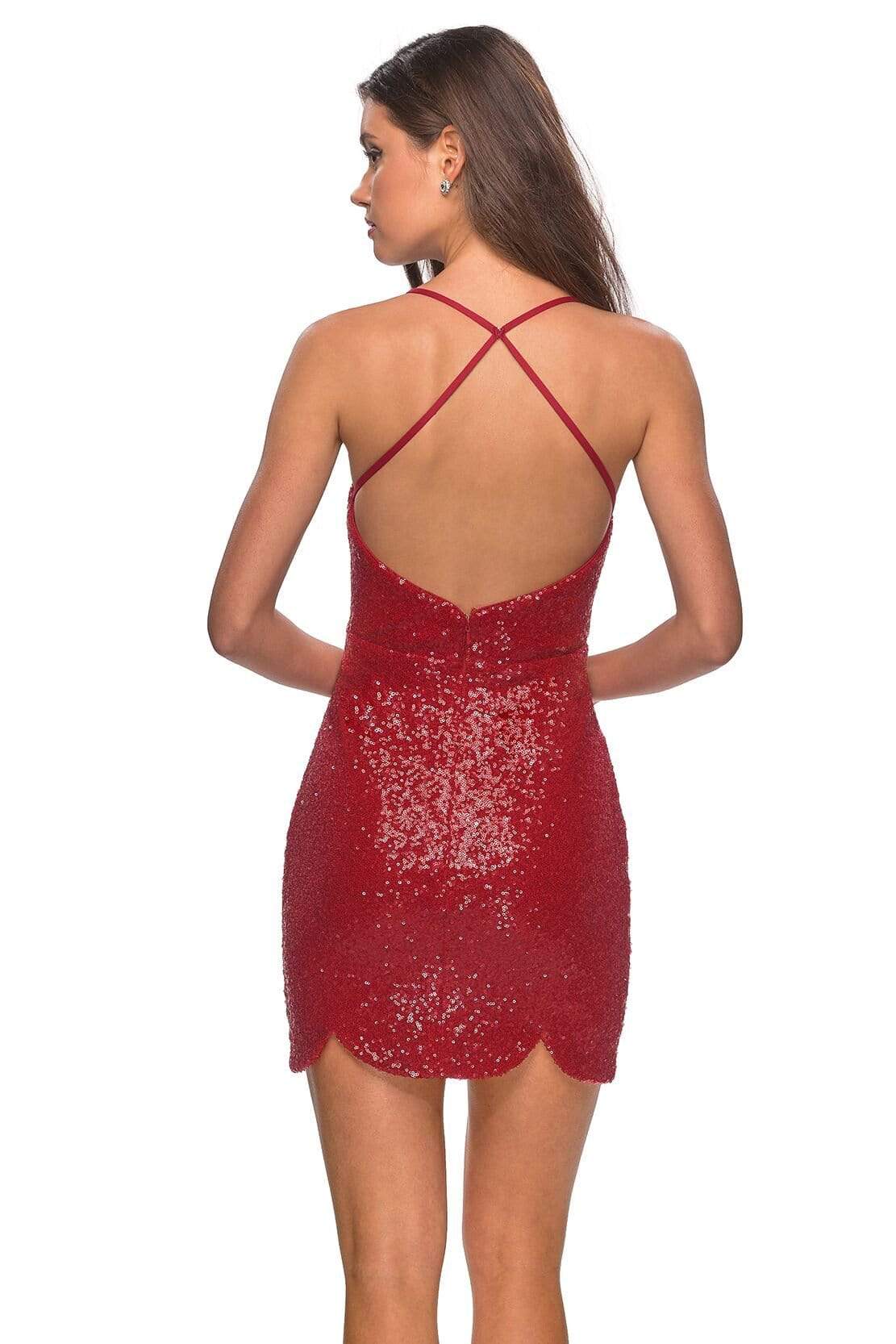 La Femme 28228 is a charming choice for your next special occasion. Short dress that is embellished with sequins throughout and parades sheath silhouette. It features thin strap, deep plunging neckline and a sexy crisscross back strap that will let you flaunt some skin. This La Femme 28228 creation is truly a definition of glamour. Model is wearing black and red colors.
