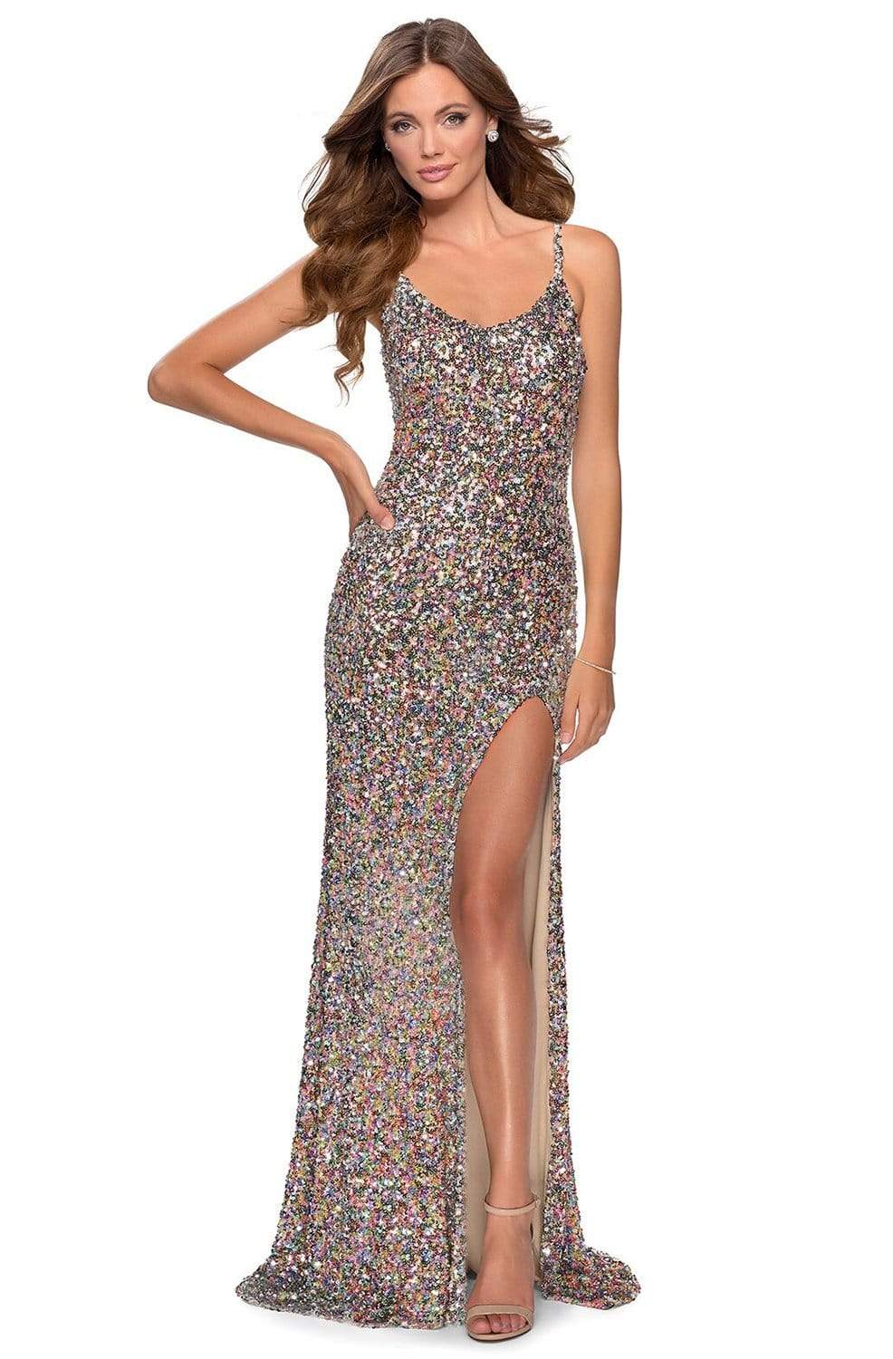 Shine through the night in this mesmerizing La Femme 28482. This sleeveless stunner features a scoop neckline, adorned with sequin detailing, scoop back and zipper closure. The sheath silhouette skirt is styled with high-leg slit and sweep train. This La Femme creation will make sure you turn heads all night long.