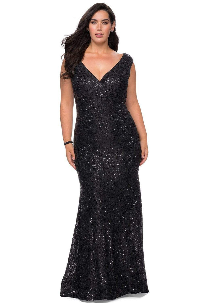 La Femme - 28837 V Neck Rhinestone Beaded Full Lace Simple Prom Gown
