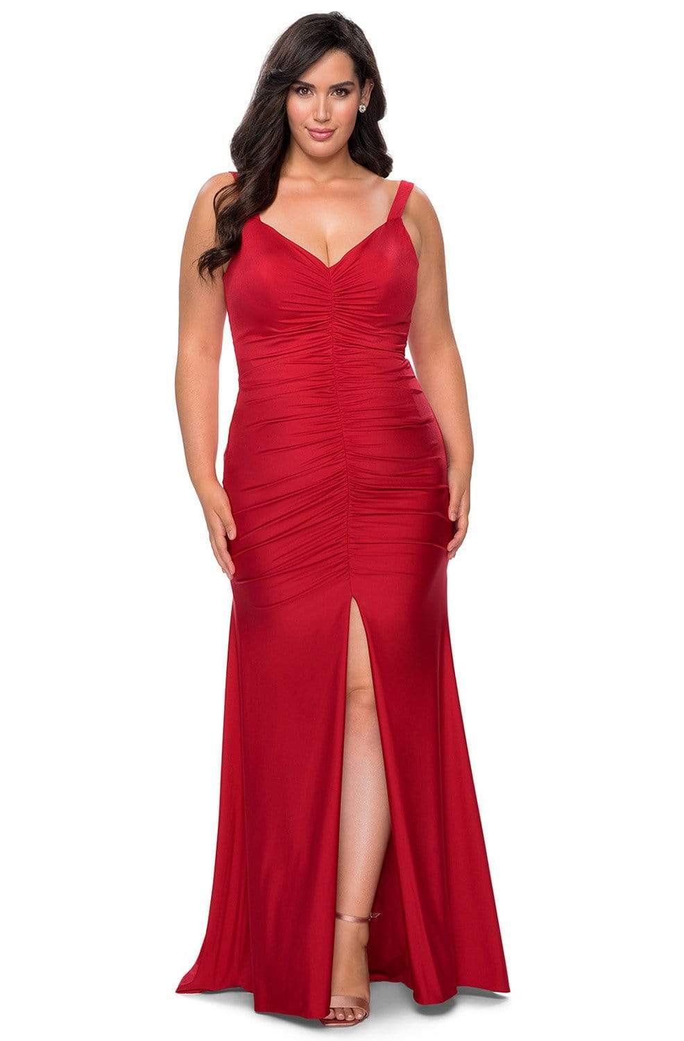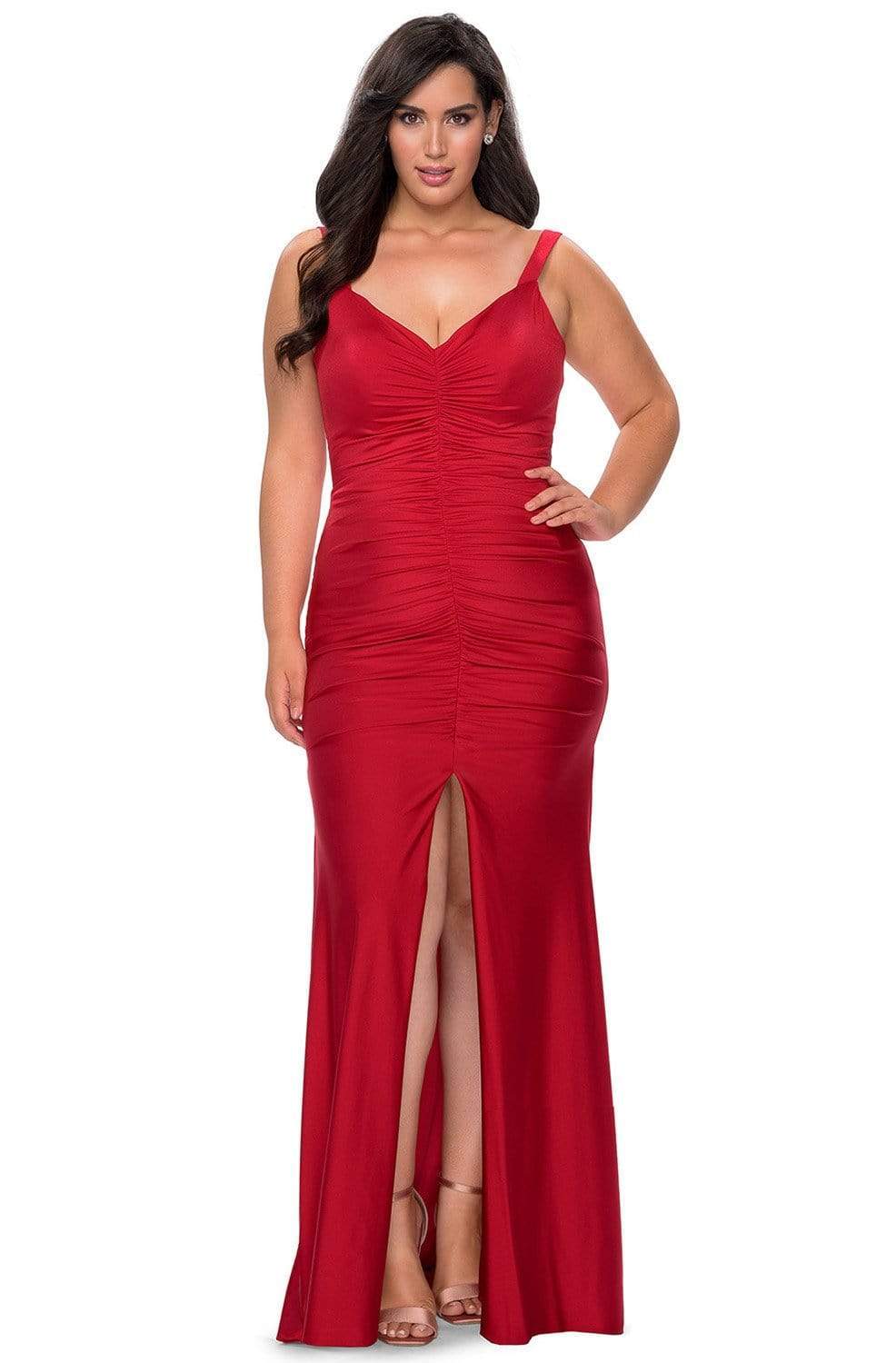 La Femme - 29027 V-neck Ruched Jersey Junior Prom Dress