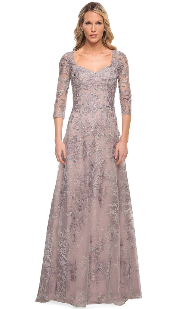 Enter the hall with grace and beauty in this La Femme 30078 creation. This ensemble has a lovely lace applique detailing on the fitted sheer bodice framed with unique V-neckline with illusion quarter-length sleeves. Adorned with embroidery all over, sheer back with a zipper closure completes the dress. Charm them all in this La Femme collection. Whether you want an elegant minimalist long gown or an intricately embellished evening dress, La Femme dress collection can give you just the right dress you are searching for.