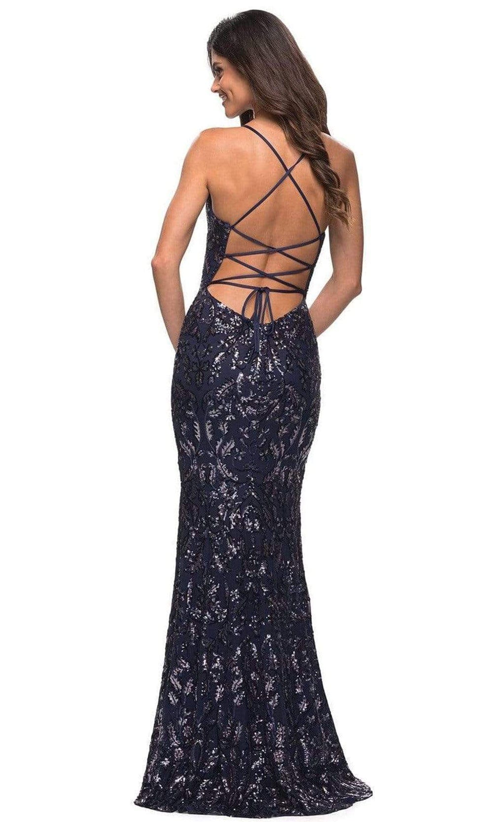 Look and feel glamorous in this evening dress by La Femme 30150. Elegance in its finest is the design inspiration behind this dress which was perfectly captured in the sweetheart neckline and boxy lace up back. This masterpiece is even more glamorous with the embellished outer fabric in floral pattern. Feel dainty and feminine in this enchantingly designed La Femme gown.