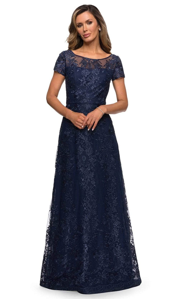 This beautiful piece is exquisitely crafted with lattice pattern and floral lace with glimmering rhinestone beadwork on its mesh overlay, as it defines an illusion bateau neckline with dainty short sleeves and a semi-fitted lined bodice. From the natural waist, the modest A-Line skirt glides in a full length. Models are wearing the Mauve, Navy and Silver colors.