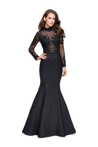 La Femme - Long Sleeve Lace And Mikado Evening Gown 25677