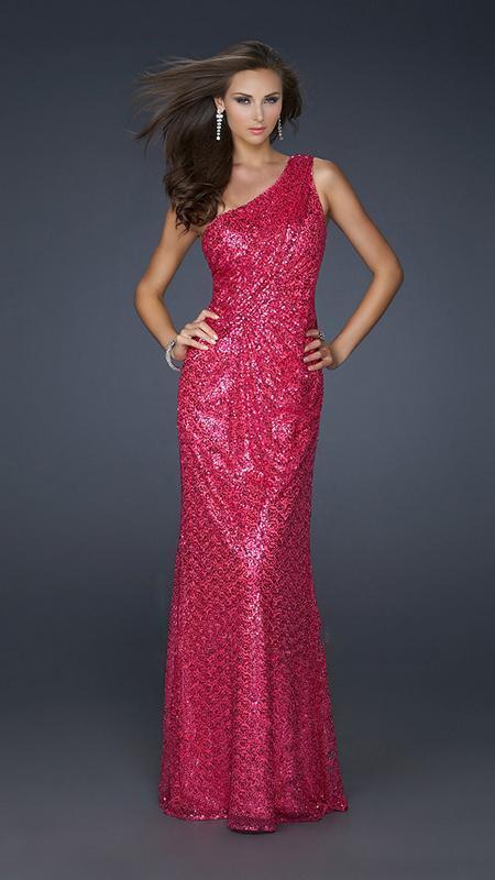 Sparkle just like a star in this stunning La Femme 17018 one shoulder evening gown. Iridescent floor length all over-sequined dress that has a fitted asymmetrical bodice with a single shoulder strap. This is the perfect dress that is sure to flatter your best curve and then drops effortlessly into a classy, full length skirt. This La Femme collection is sure to bring out that red carpet superstar look in you!