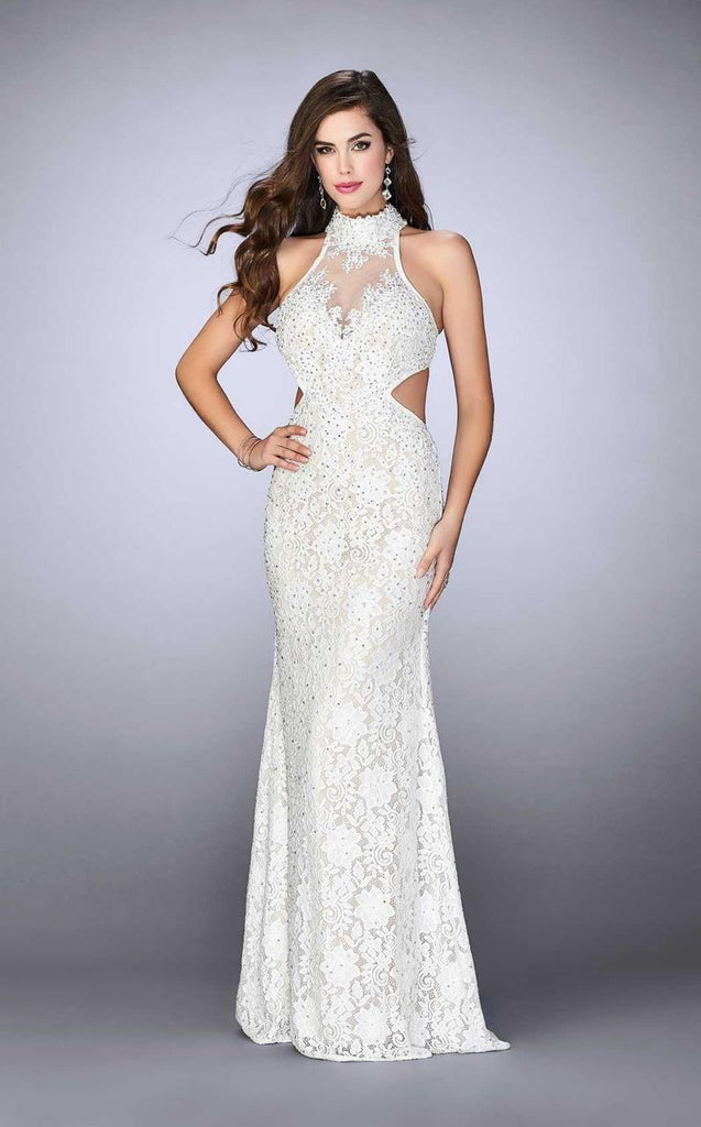 La Femme - 23732 Sleeveless Illusion High Halter Neck Laced Gown