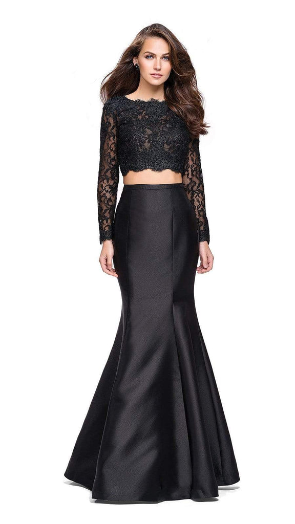 | Details: | Long Sleeves, Appliques, Rhinestones, Scalloped Lace, Full Back, Back Zipper Closure, Two-Piece, Mikado Skirt, Full Length Hem |
