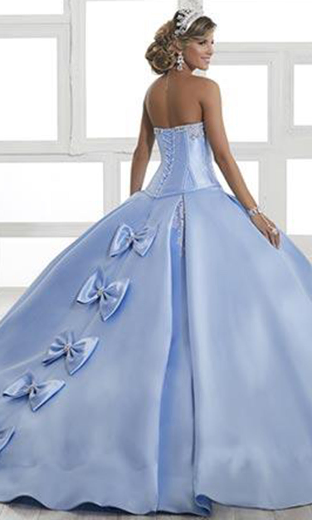 | Details: | Strapless, Corset Bodice, Corset Back, Pleated Skirt, Beaded Appliques, Ribbon Accents, Court Train |