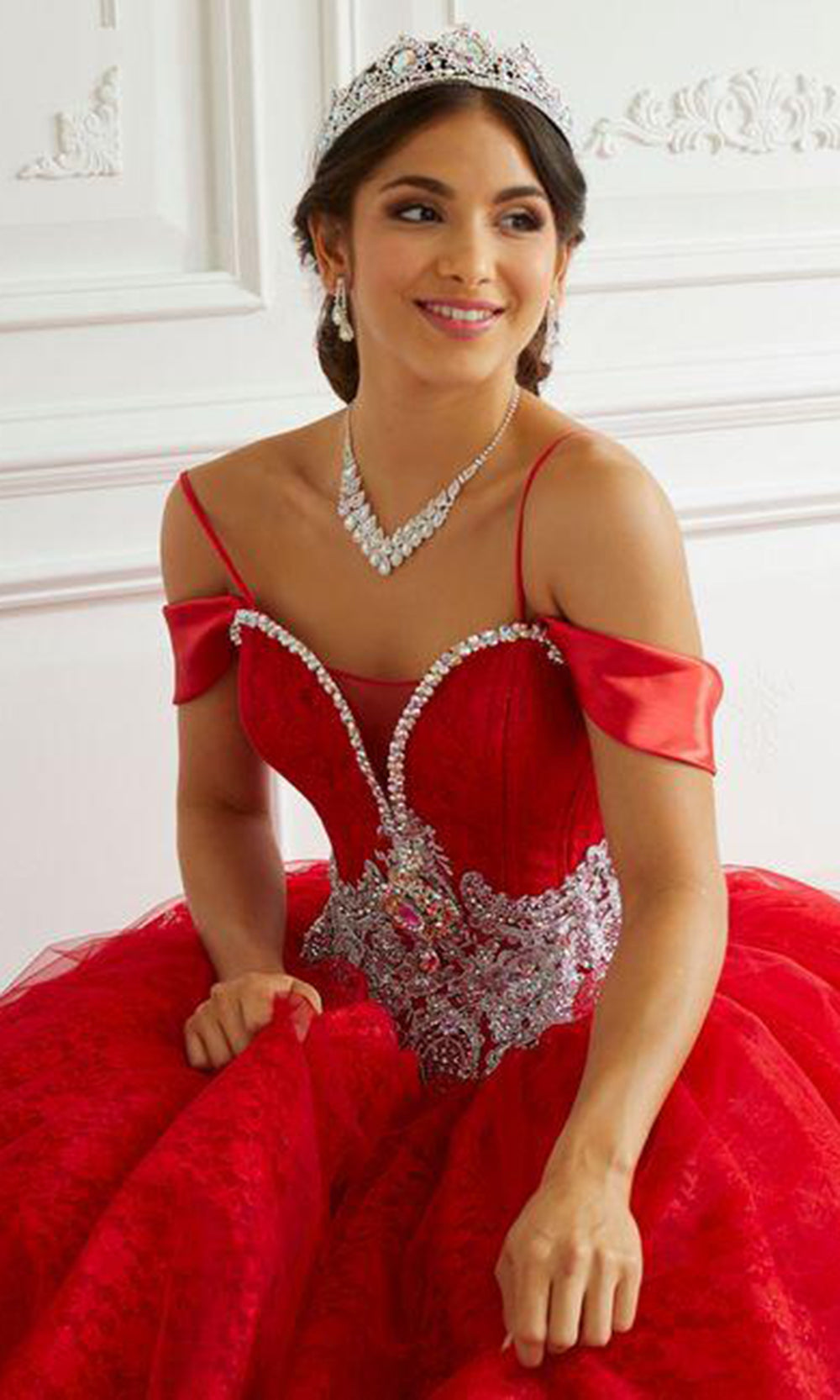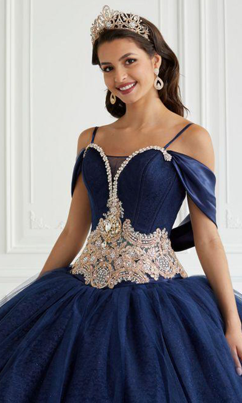 Make your night one to remember in this LA Glitter Designers 24095 ballgown. Showcasing an embellished and glittery bodice with basque waist, this evening gown also displays a plunging sweetheart neckline supported by thin straps and back cowl. The floor length gown reveals a mid-open back with lace up back closure complemented by a big back bow. Fall in love with the sheer elegance of this ethereal LA Glitter Designers creation.