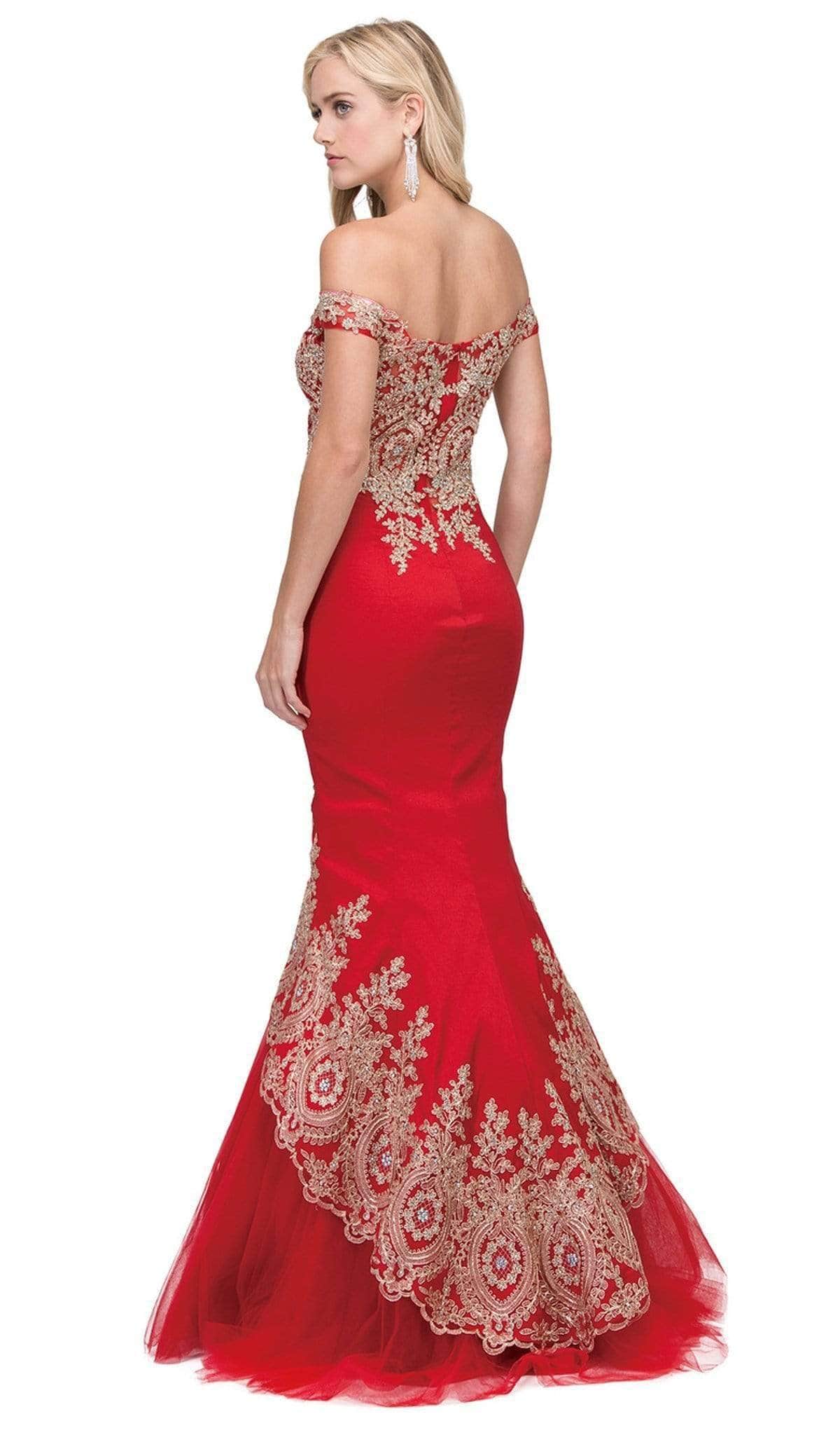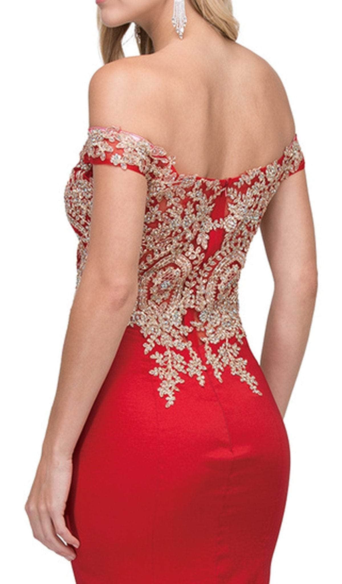 Promote your attention-grabbing style as you sashay your way in this stunning creation from Dancing Queen - 2413. Beautified with stunning vine-like appliques, this X dress is fashioned with a off-shoulder neckline on a fitted bodice. It unveils a mid-open back with a center zipper closure for a perfect fit. From its natural waistline, the voluminous tulle skirt flourishes to a mermaid silhouette as it cascades to a full length hemline. Strike a scintillating prom pose while wearing this sensational masterpiece by Dancing Queen - 2413. Models are wearing Hunter Green, Navy, and Red colors.