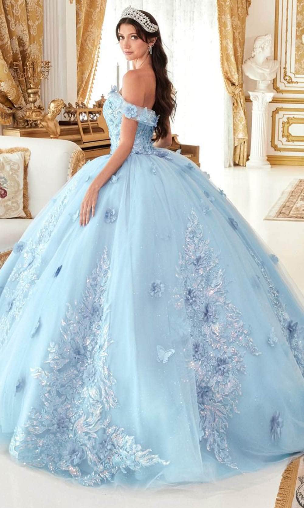 This Ladivine 15713, is a dress that offers versatility and exquisite beauty in one stunning package. This enchanting ball gown can be worn in two ways, allowing you to choose between a timeless sleeveless look or an alluring off-shoulder style. Adorned with dimensional floral appliques that bloom with delicate beads, this dress is a true work of art. The lace-up closure at the back ensures a perfect fit, while the gown gracefully concludes with a captivating train. Ladivine 15713 embodies the essence of elegance and innovation. Models are wearing Lavender and Lt Blue colors.