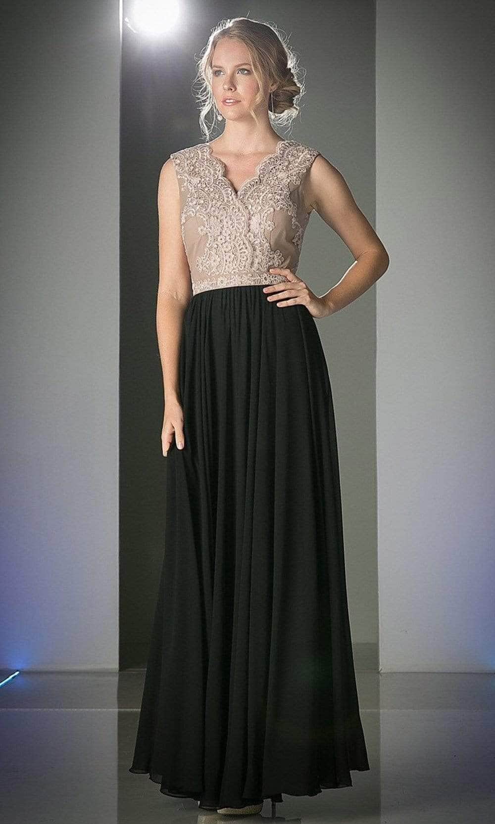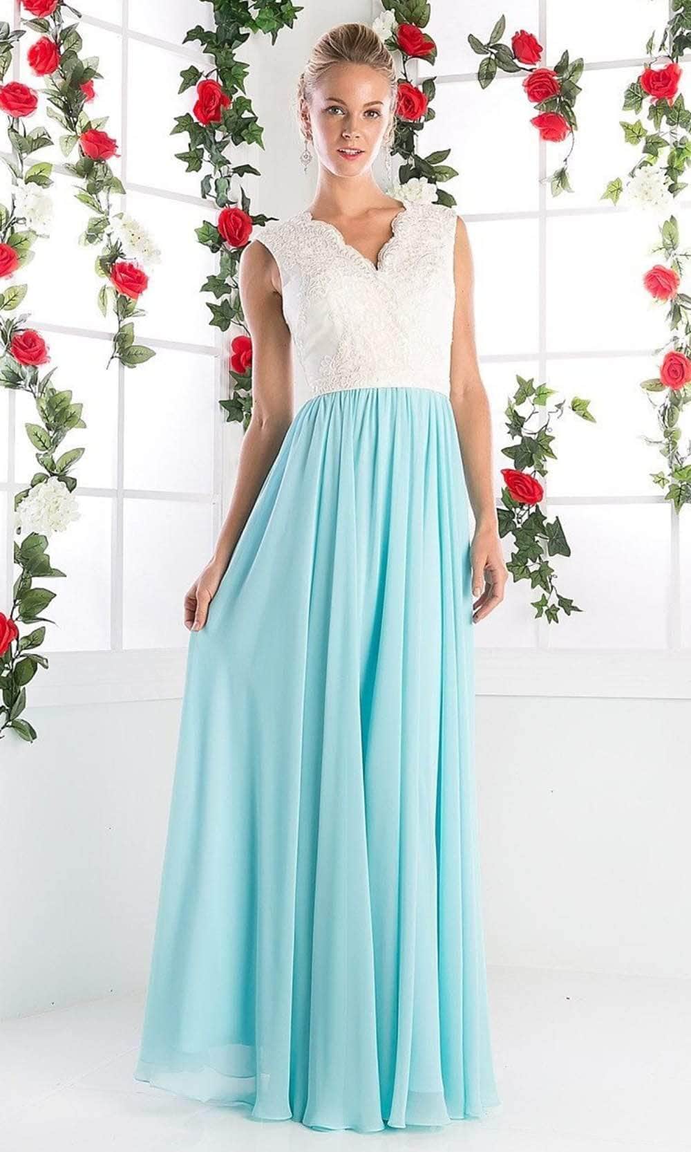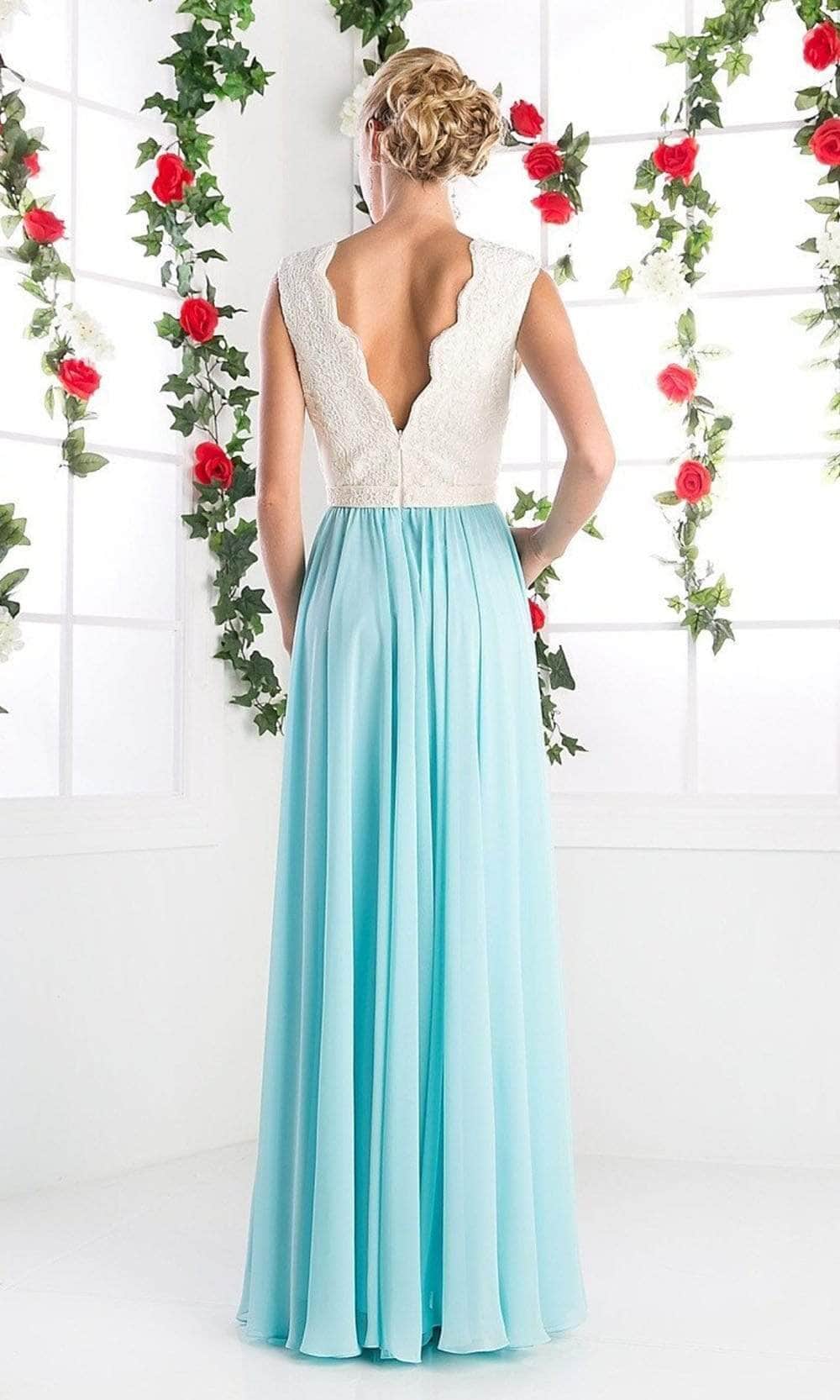 When you wear this dreamy long dress by Ladivine 1965, you will exude class and sophistication. This sleeveless gown features a scalloped V-neckline that matches the low V-back secured with a zipper closure. The lace bodice is covered in delicate patterns that contrast with the solid A-line skirt, which flutters to a full-length hemline. You will captivate the attention of those around you with your refined style while wearing this Ladivine 1965 masterpiece. Models are wearing Ivory-Black, Ivory-D Rose, Ivory-Mint, Ivory-Mocha, Mocha-Black, and Mocha-Navy colors.