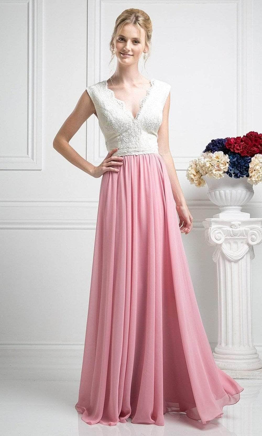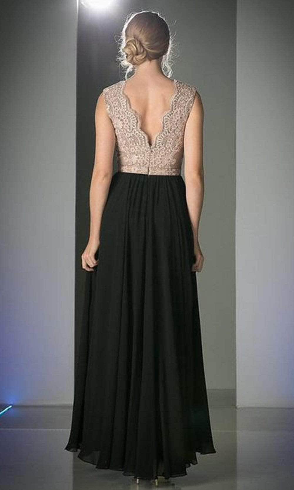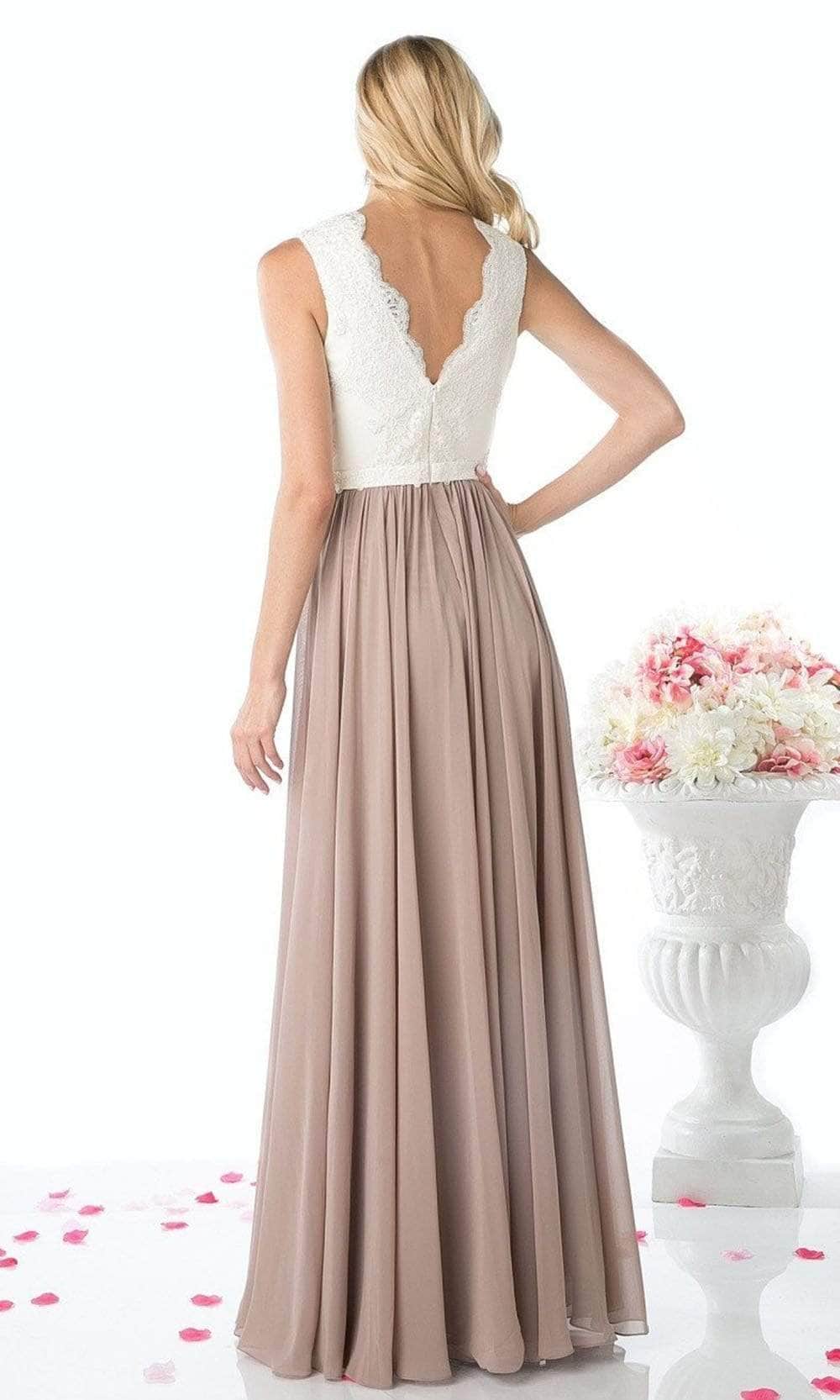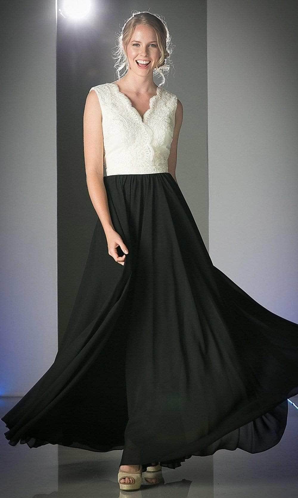 When you wear this dreamy long dress by Ladivine 1965, you will exude class and sophistication. This sleeveless gown features a scalloped V-neckline that matches the low V-back secured with a zipper closure. The lace bodice is covered in delicate patterns that contrast with the solid A-line skirt, which flutters to a full-length hemline. You will captivate the attention of those around you with your refined style while wearing this Ladivine 1965 masterpiece. Models are wearing Ivory-Black, Ivory-D Rose, Ivory-Mint, Ivory-Mocha, Mocha-Black, and Mocha-Navy colors.